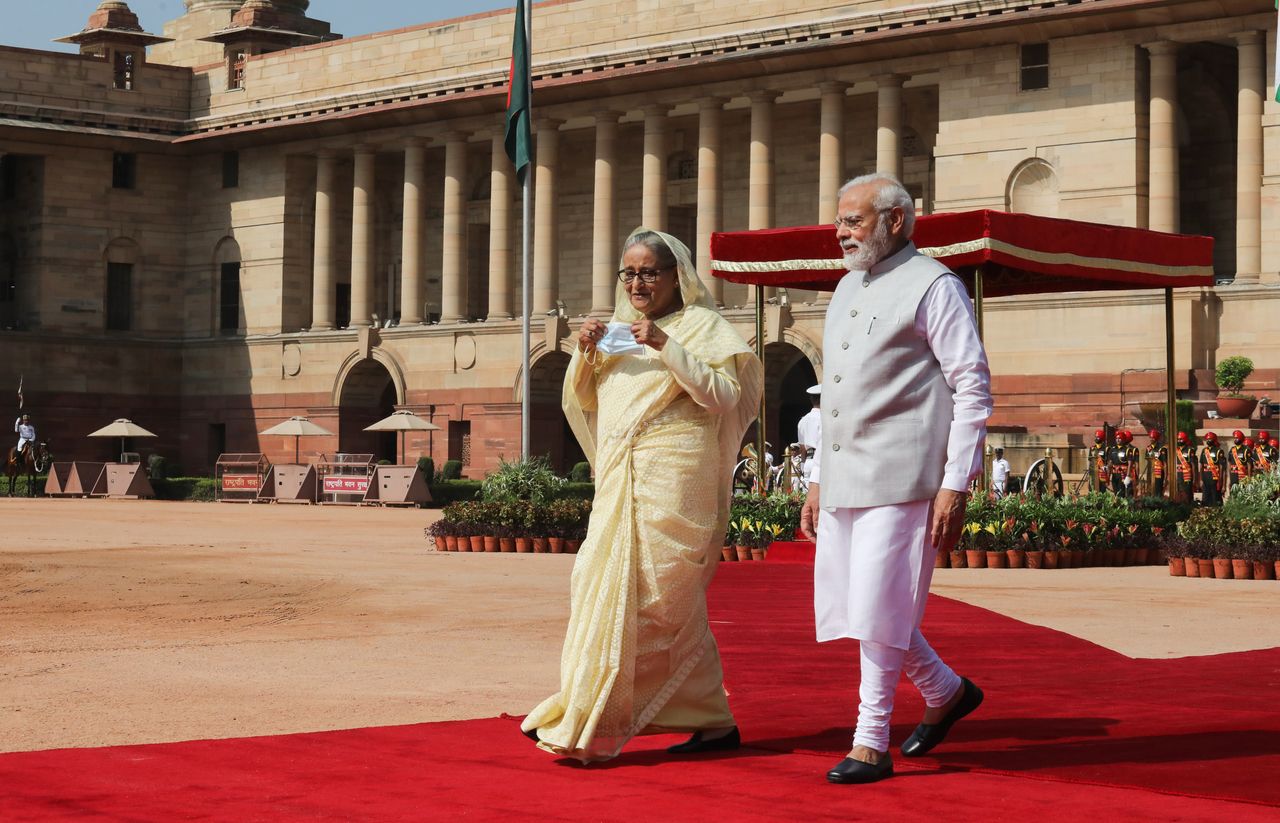2022年,孟加拉國總理謝赫·哈西娜與印度總理納倫德拉·莫迪在新德里會晤。圖片來源:Naveen Sharma/SOPA Images/Zuma Press