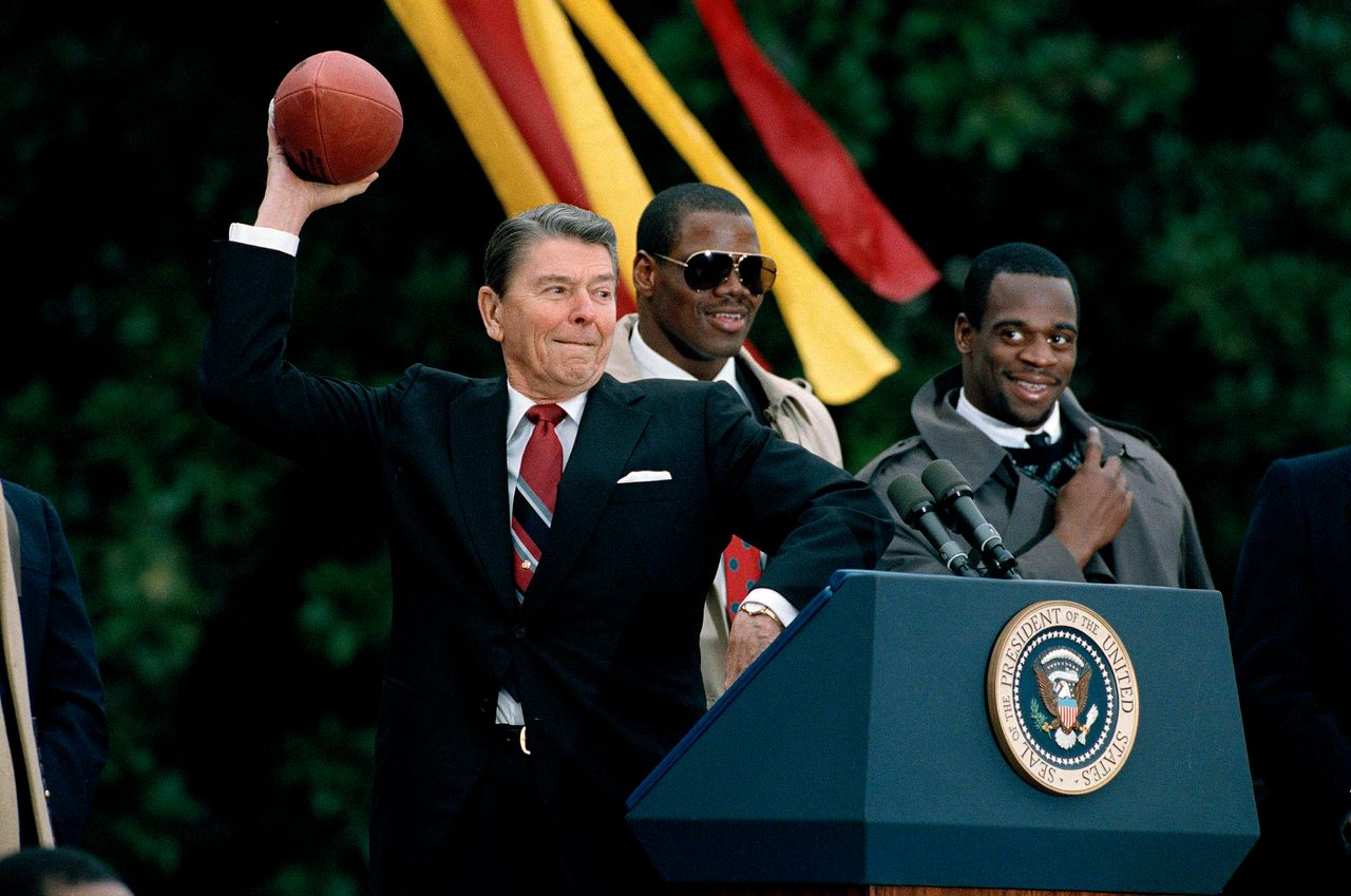 1988年,美國史上最高齡總統羅納德·里根在白宮接見超級碗冠軍華盛頓紅皮隊。圖片來源:道格·米爾斯/美聯社歷史上多位總統曾隱瞞重大健康問題。例如伍德羅·威爾遜1919年10月嚴重中風後喪失履職能力,但事件對公眾和國會成員保密。其夫人伊迪絲·威爾遜在此後承擔了向總統傳遞信息的重要角色。