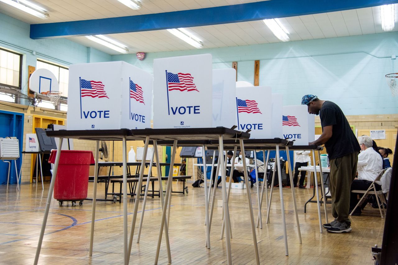 2月27日,密歇根州底特律市沃倫·E·鮑小學,一位選民站在投票亭內。圖片來源:辛迪·埃利奇/Shutterstock刊載於2024年2月29日印刷版,標題為《弱勢在位者的對決》。