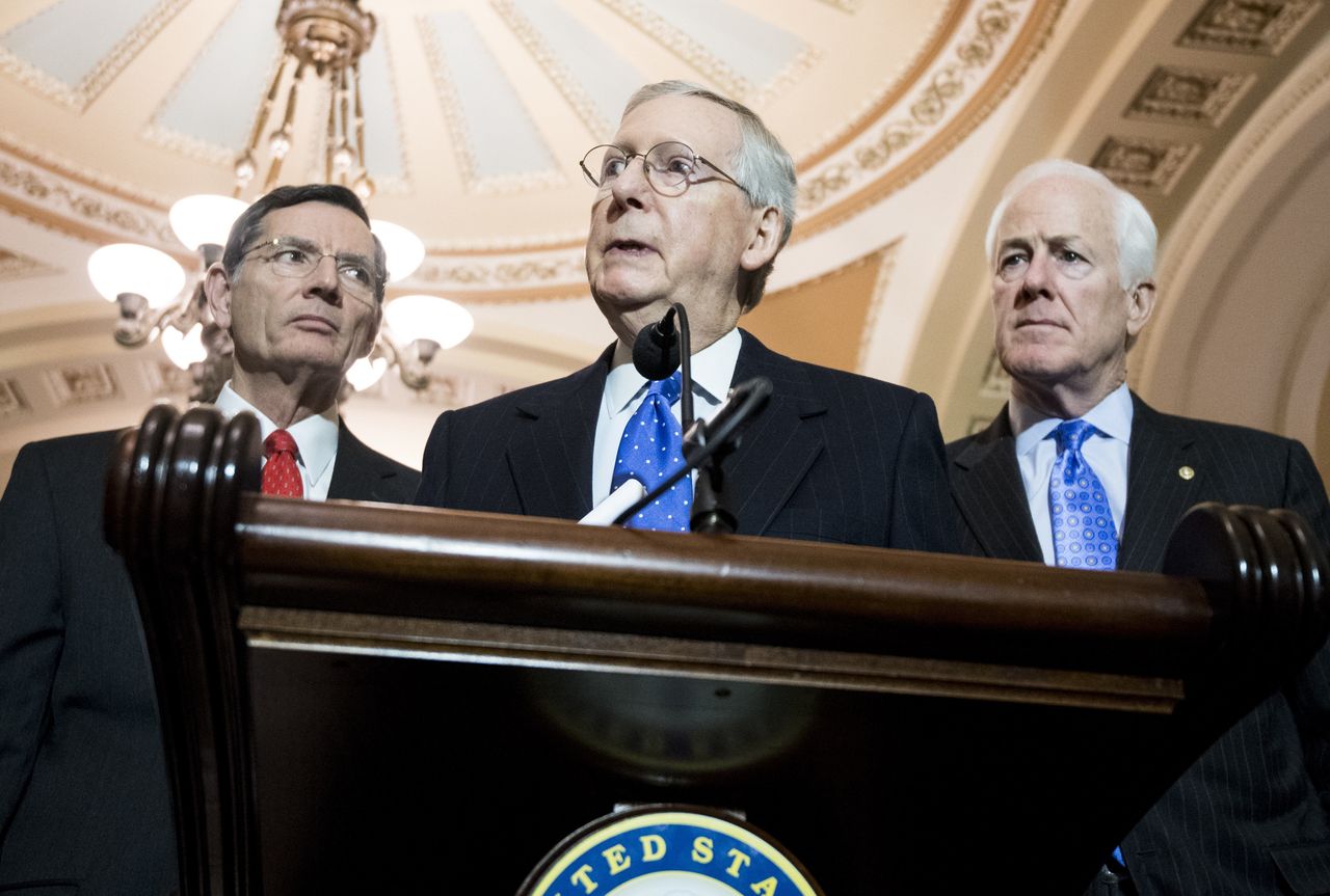參議員約翰·巴拉索(懷俄明州共和黨人)、參議院少數黨領袖米奇·麥康奈爾(肯塔基州共和黨人)與參議員約翰·科寧(得克薩斯州共和黨人)。圖片來源:比爾·克拉克/祖瑪通訊社在這三位"約翰"中,巴拉索與特朗普關係最為緊密。這位懷俄明州保守派人士是本輪選舉週期中首位支持特朗普的參議院共和黨領導層成員。
