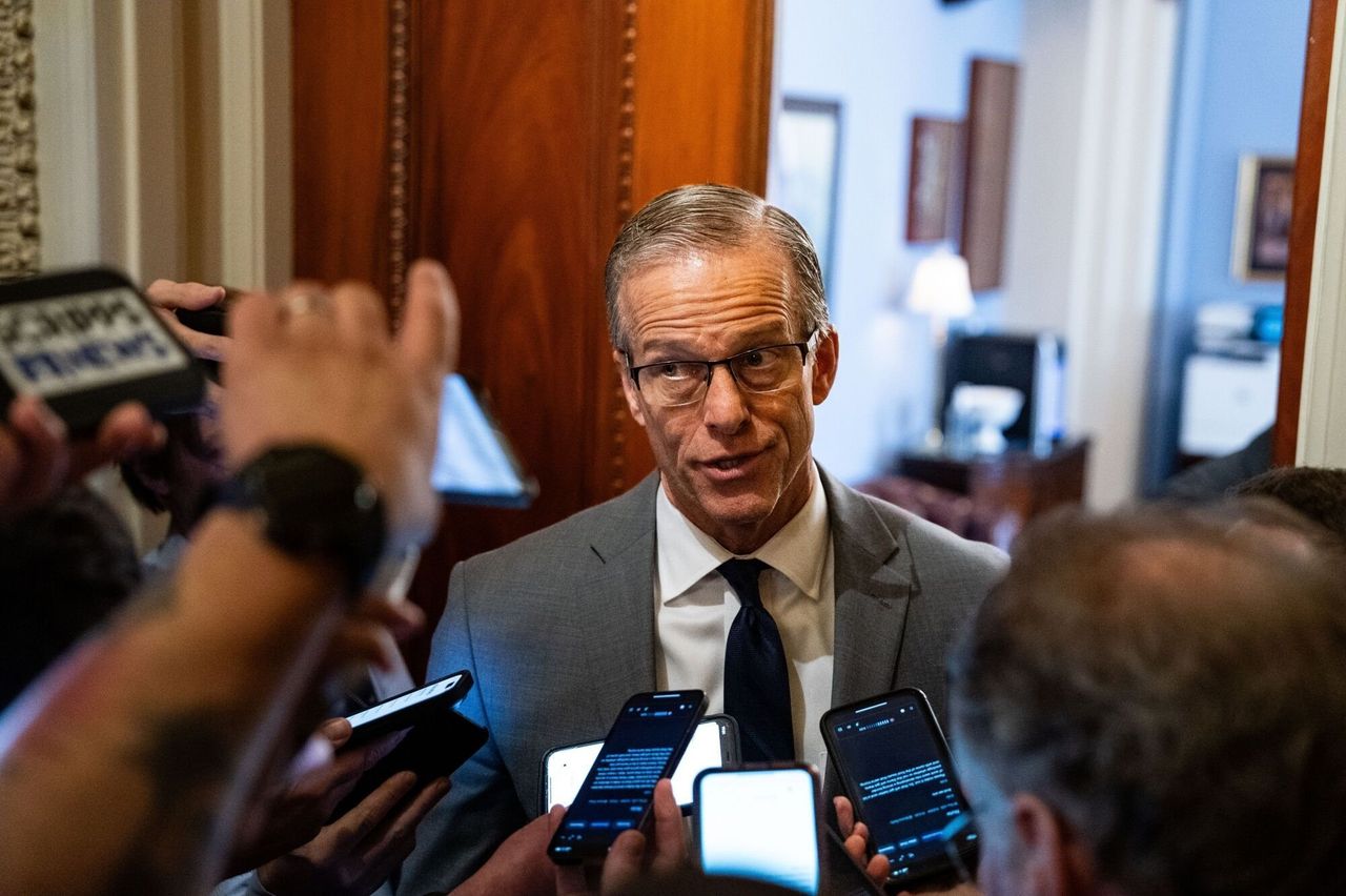 當被問及是否會競選領袖時,蒙大拿州共和黨參議員史蒂夫·戴恩斯沒有回應。圖片來源:凱文·迪奇/蓋蒂圖片社71歲的巴拉索是參議院共和黨會議主席,在領導層中排名第三。他在該團體中扮演更為保守的黨派成員角色,並與特朗普關係密切。週三他拒絕透露是否計劃競選領袖。“我將與會議成員交談,聽取他們的意見,瞭解他們希望朝哪個方向推進,“他表示。