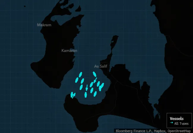 在以色列對拖船的攻擊後,至少有15艘油輪在也門的拉斯伊薩港附近等待。在以色列空襲損壞了將它們帶到岸邊所需的拖船後,商船的異常龐大船隊在紅海的也門拉斯伊薩港附近排起了長龍。