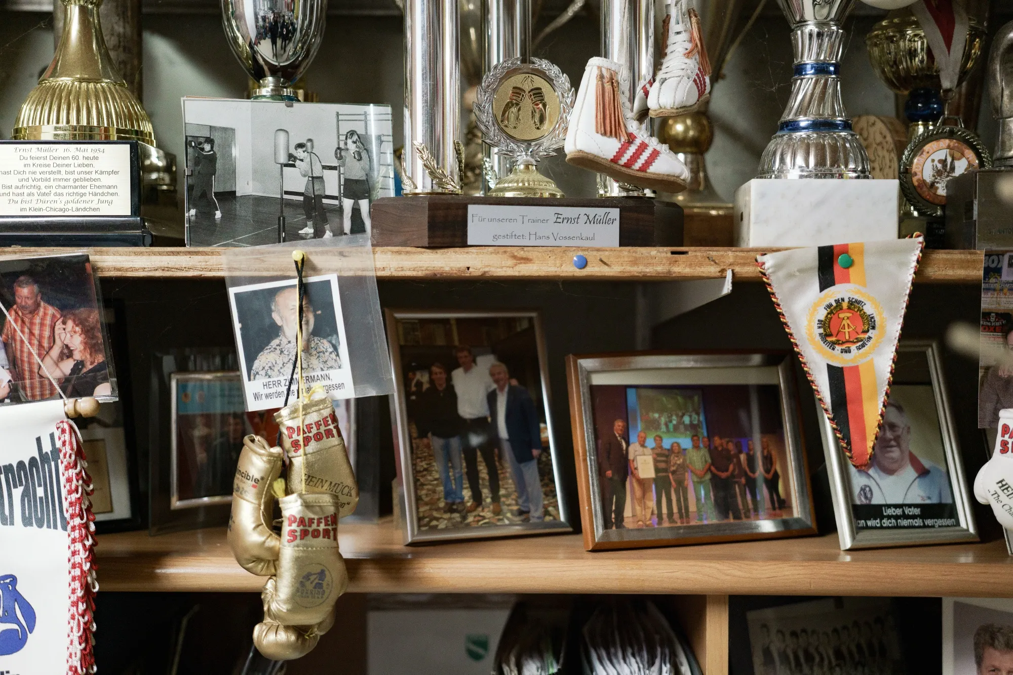 恩斯特·穆勒輝煌時期的紀念品裝飾着這位前冠軍拳擊手在杜倫的辦公室。攝影師:本·基爾布/彭博社坐在他的辦公室裏,牆上掛滿了他在1970年代末輝煌時期的照片和紀念品,穆勒自豪地指着他從市政府獲得的獎項,以表彰他幫助非德國青少年融入社區。夫婦倆表示,德國需要團結起來走出危機。