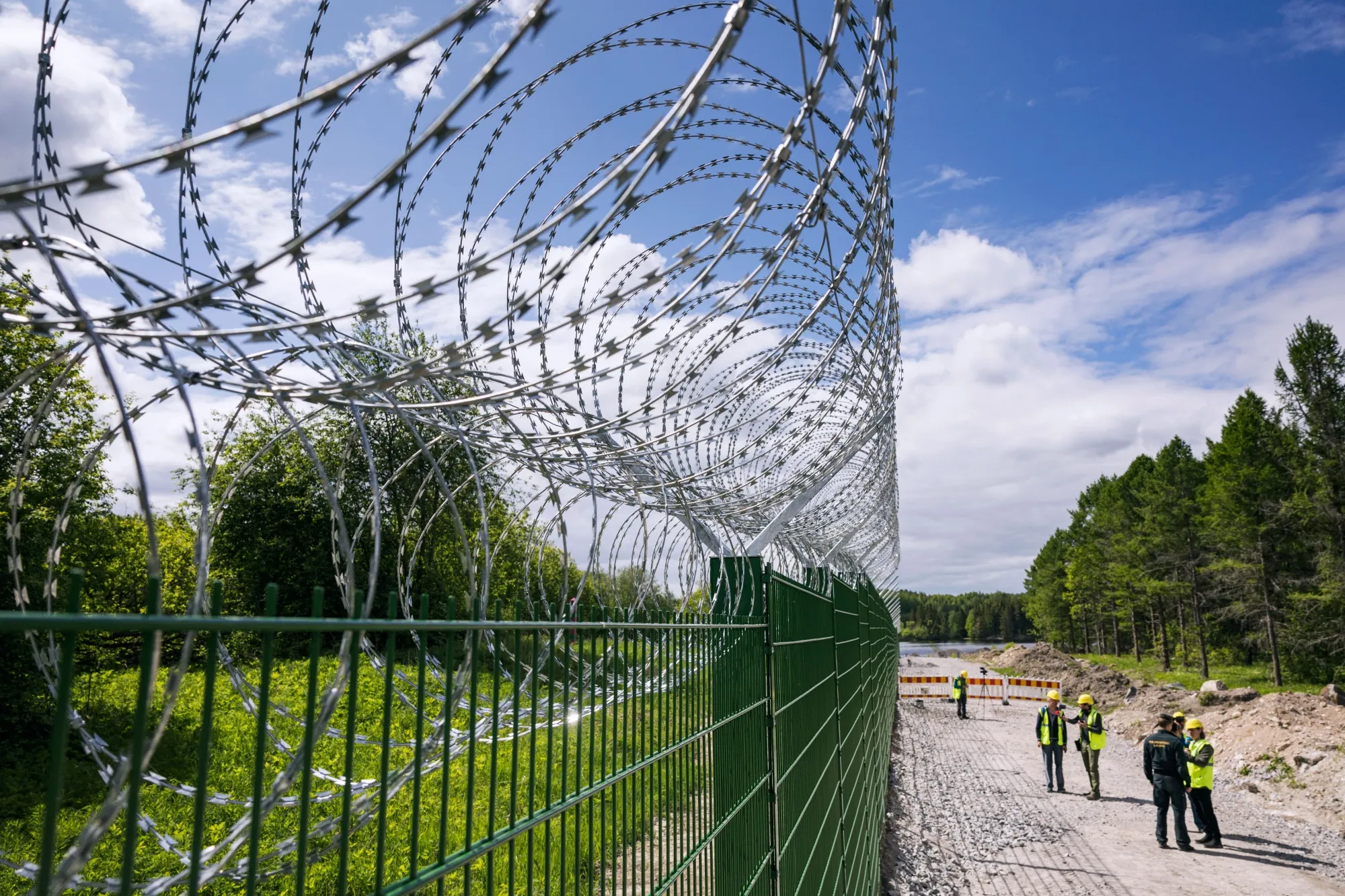 在芬蘭東南部伊馬特拉附近的一個邊境口岸,正在建設的一段圍欄。