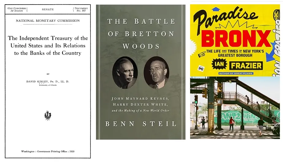 我們請教了 紐約聯邦儲備銀行的喬希·楊格 一些閲讀推薦。他建議閲讀 美國獨立財政與其與國家銀行的關係,作者是大衞·金利,以及本·斯蒂爾的 佈雷頓森林之戰:約翰·梅納德·凱恩斯、哈里·德克斯特·懷特與新世界秩序的形成,書中講述了“使美元成為全球貨幣的所有‘虛晃、施壓、幕後交易和純粹的好運’。”最後,他推薦了伊恩·弗雷澤的 天堂,布朗克斯:紐約最偉大區的生活與時代,喬希形容這本書為“布朗克斯的步行遊覽,展現其如何演變為廣闊的美國曆史。”