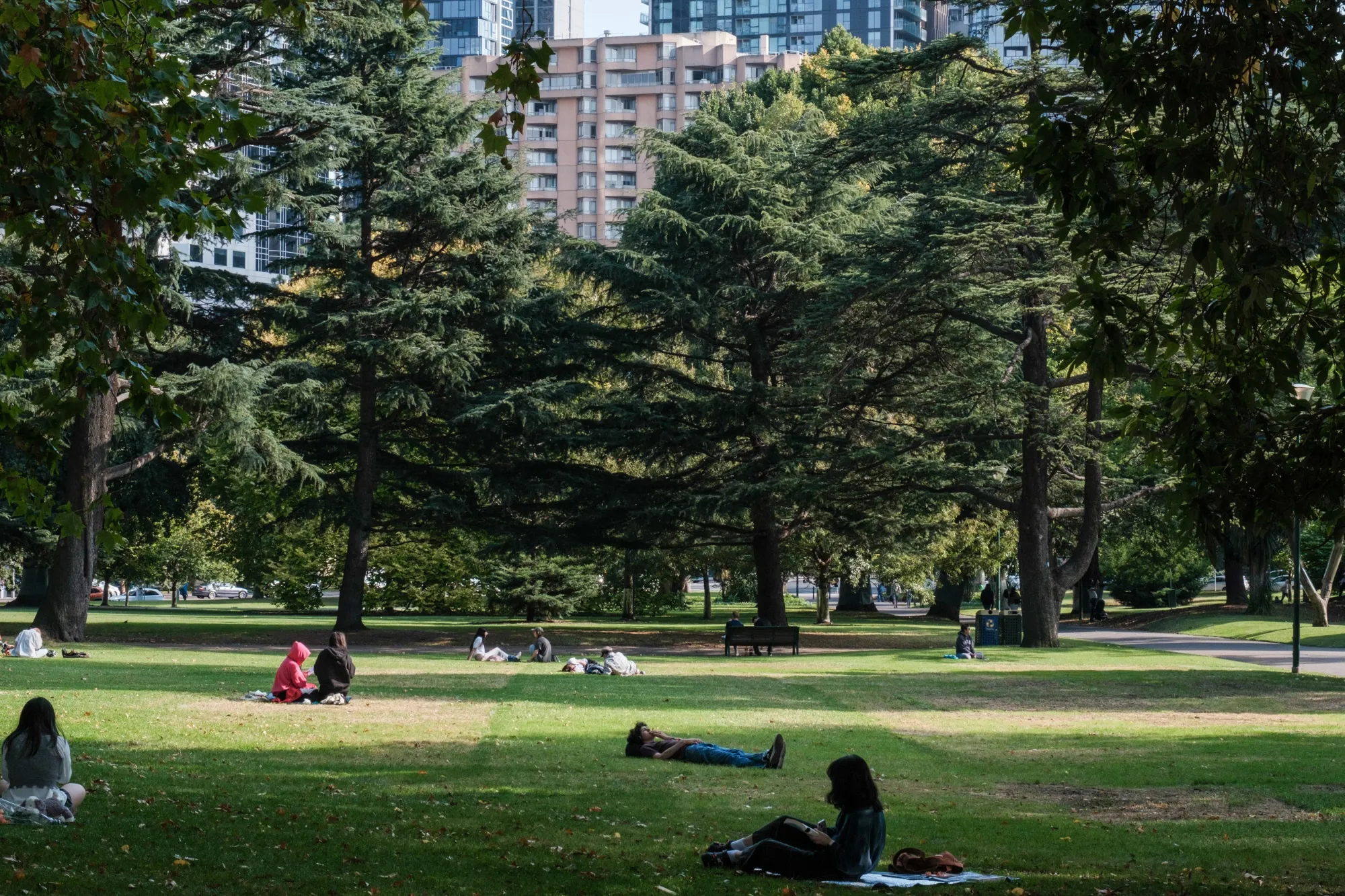 人們坐在澳大利亞墨爾本的卡爾頓花園裏,攝影師:詹姆斯·巴格/彭博社