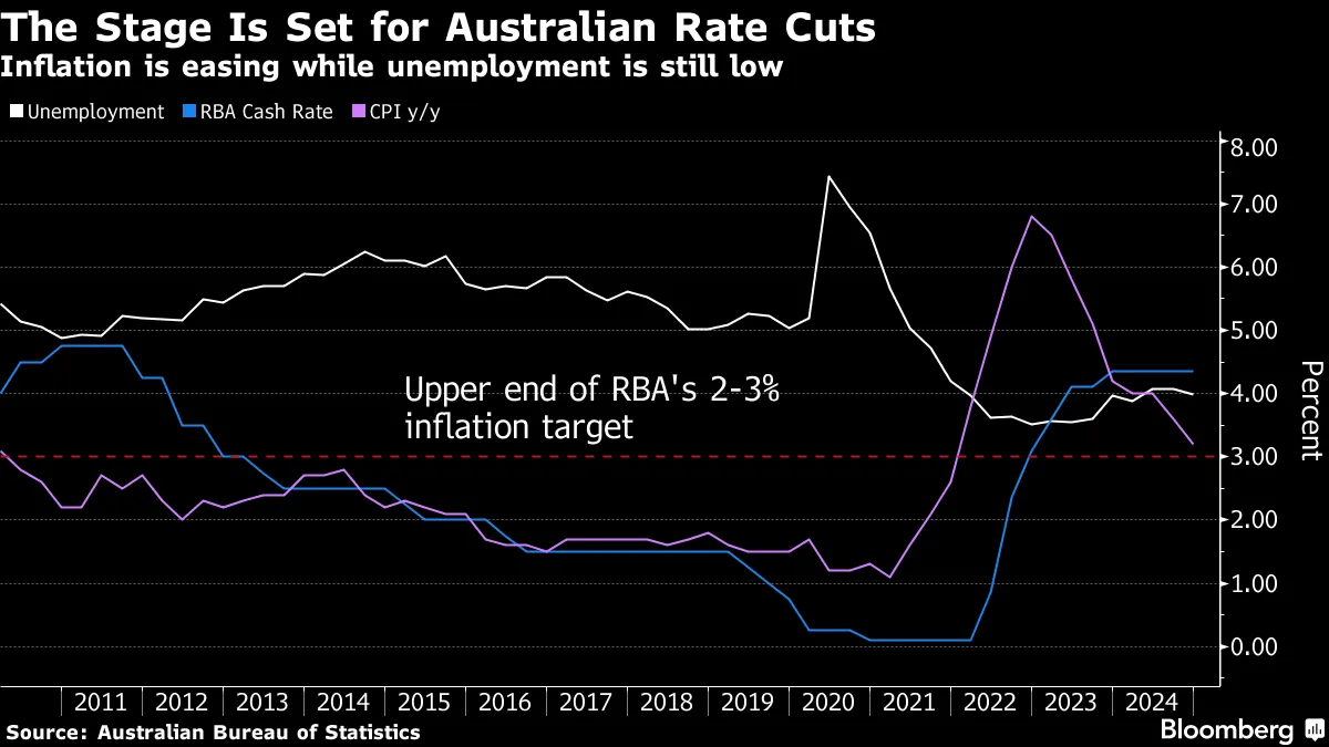 澳大利亞零售數據12月跌幅遠低於預期,這或將增強央行對經濟正沿着軟着陸軌道前行的信心。週一數據顯示銷售額環比微降0.1%,而預期為下滑0.7%。經濟學家和金融市場普遍預計央行將於2月18日啓動寬鬆週期。