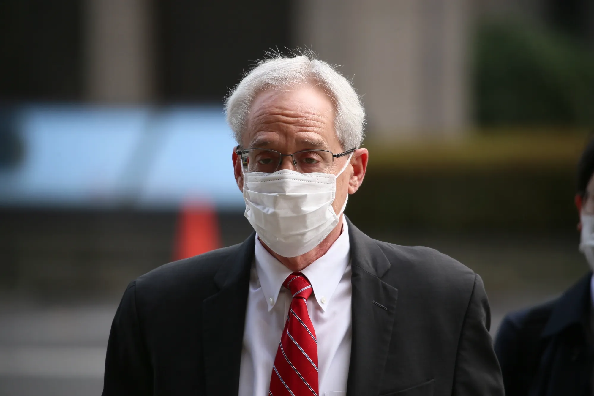 格雷格·凱利於2022年3月出席東京地方法院庭審。攝影師:張曉雨/新華社/彭博社日產汽車公司前董事格雷格·凱利協助前董事長卡洛斯·戈恩瞞報薪酬的罪名成立,該判決由三名法官組成的合議庭維持原判。