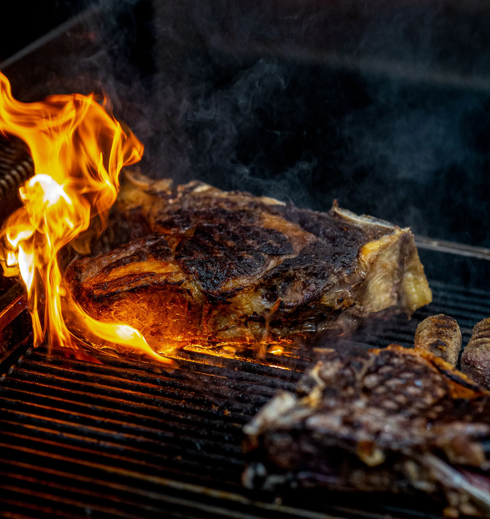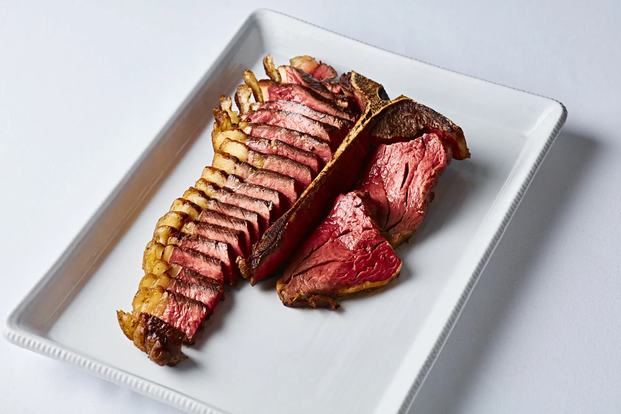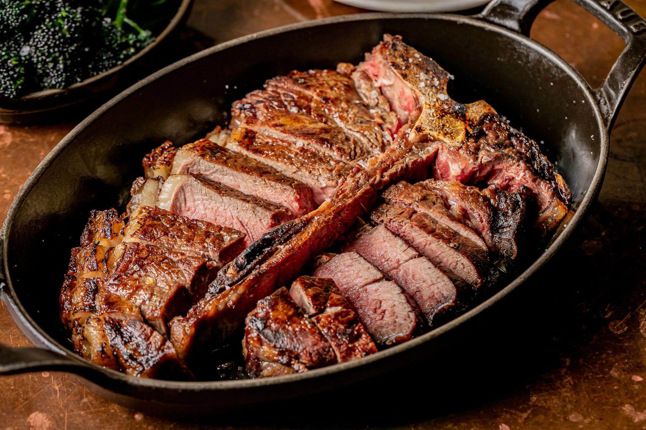 滋滋作響的Hawksmoor T骨牛排。攝影師:Justin De Souza### Hawksmoor