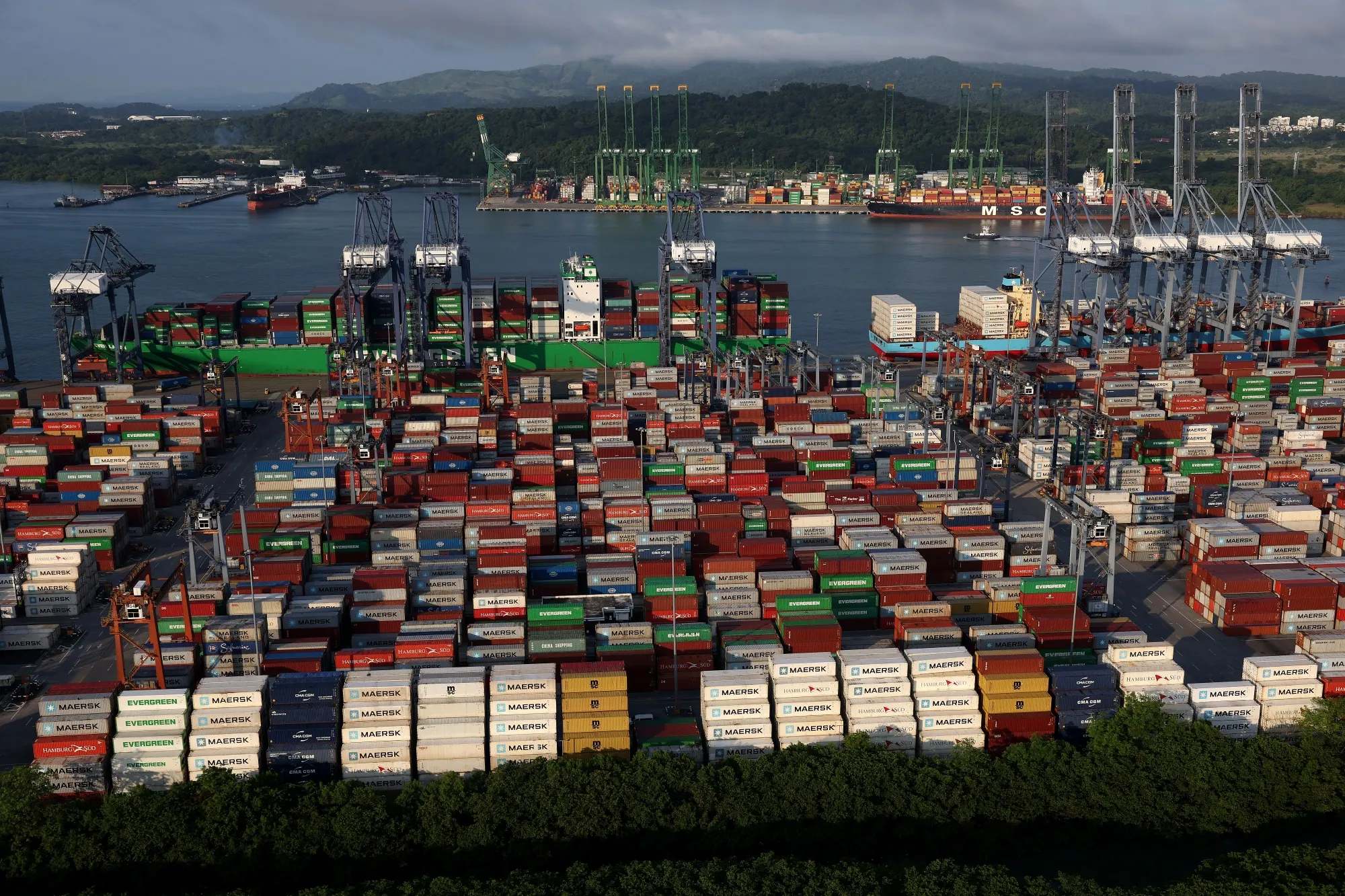 2023年巴拿馬城巴爾博亞港堆放的集裝箱。