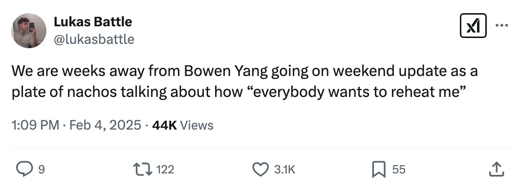 與此同時,任淑莉表示習近平主席正忙於應對房地產崩盤、貨幣危機和TikTok級別的科技陷阱。更重要的是,他清楚由於美國經濟地位遠強於中國,特朗普佔據上風。“現在的問題是習近平是否制定了完整的貿易戰應對方案,“她寫道。我想超級碗比賽會給我們些提示。