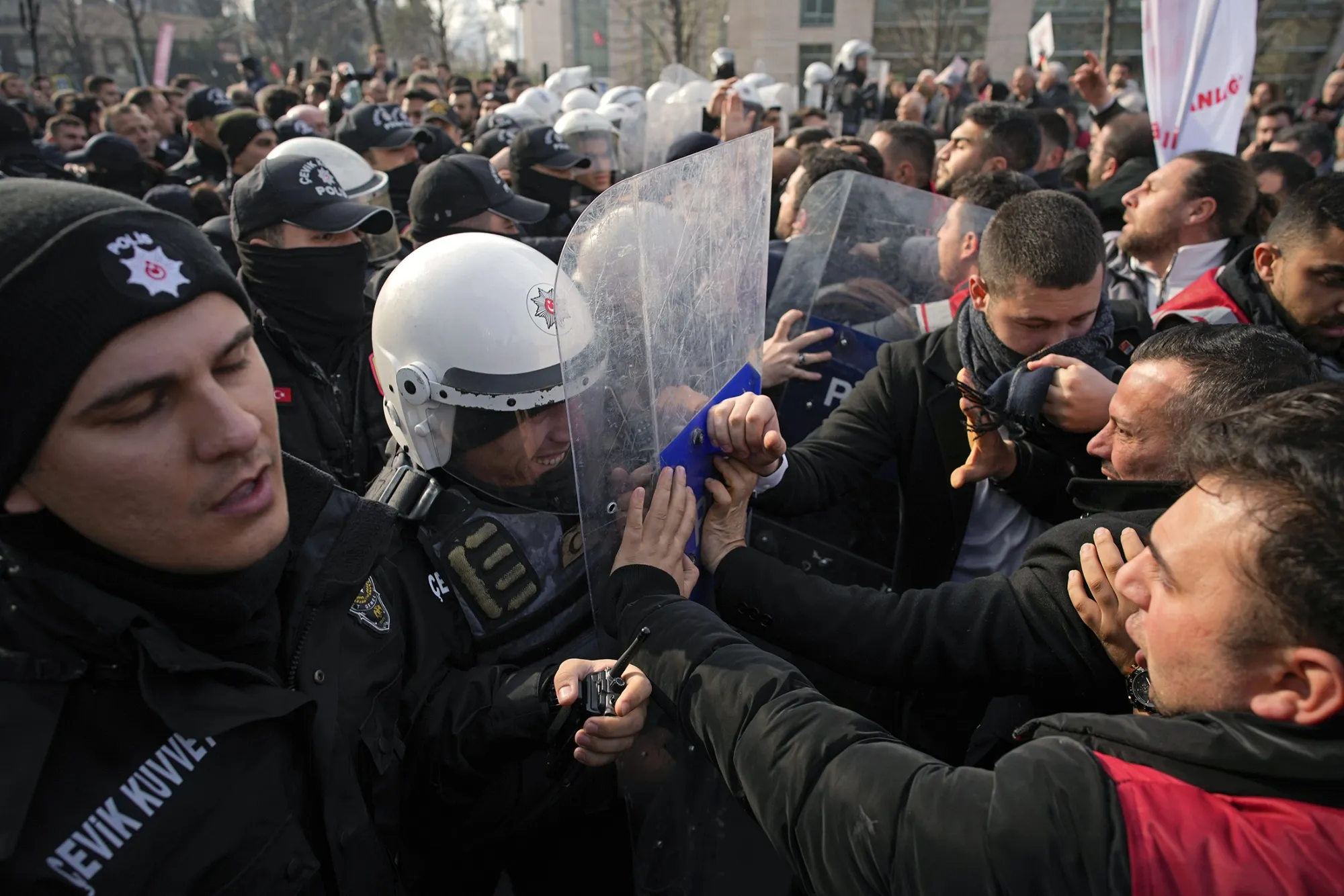 1月31日,土耳其警方與伊斯坦布爾市長埃克雷姆·伊馬姆奧盧的支持者在伊斯坦布爾發生衝突。攝影師:埃姆拉·古雷爾/美聯社全球政治諮詢公司Teneo聯席主管沃爾凡戈·皮科利談及逮捕行動時表示:“過去總會試圖為指控這些人找些看似合理的理由,現在他們似乎連這點都懶得做了。被針對的人羣範圍更加廣泛。”