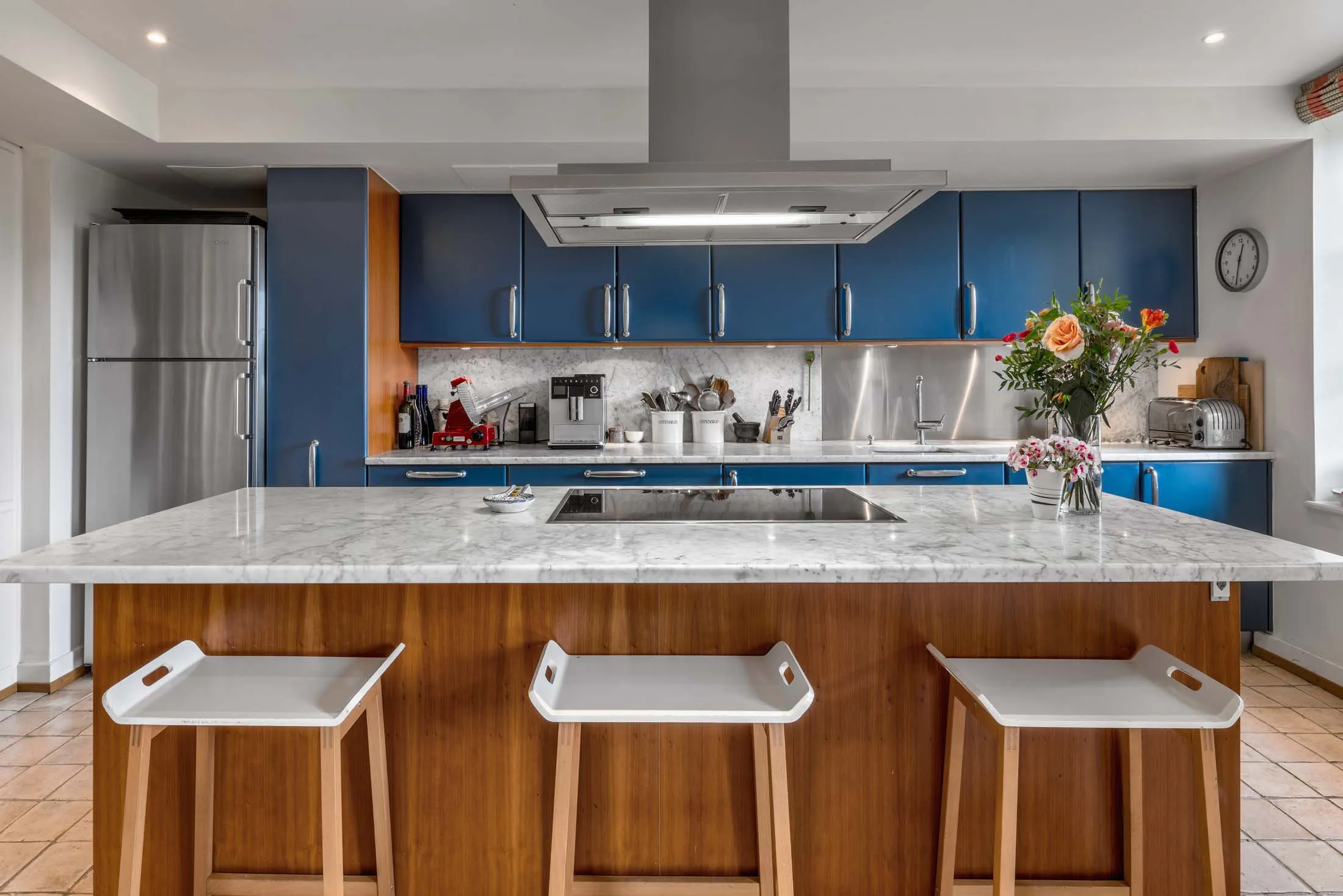 夏季舉辦派對的加熱泳池區域。來源:Knight Frank當博林夫婦買下這棟房子時,他們進行了部分翻新以適應需求。他們重新規劃了廚房位置並進行了現代化改造。博博林推測赫本當年可能僱有廚師,但因為她自己下廚時間較多,所以希望廚房在住宅中佔據更顯要位置。浴室和電路系統也進行了升級,並增建了幾間客房。