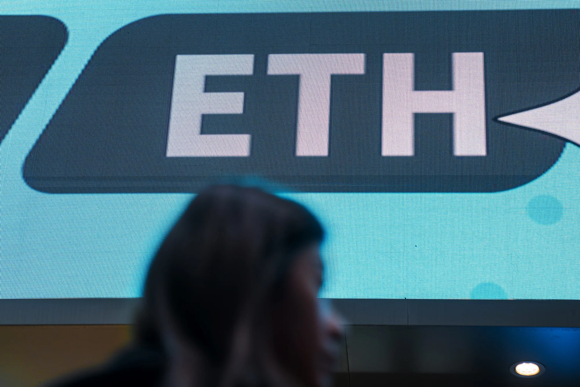 加密貨幣商店門前的以太坊標識。攝影師:林奕/Bloomberg投資者向一隻槓桿式以太坊交易所交易基金(ETF)創紀錄地投入大量資金,該基金此前因美國總統特朗普宣佈初步關税政策而在週一暴跌。