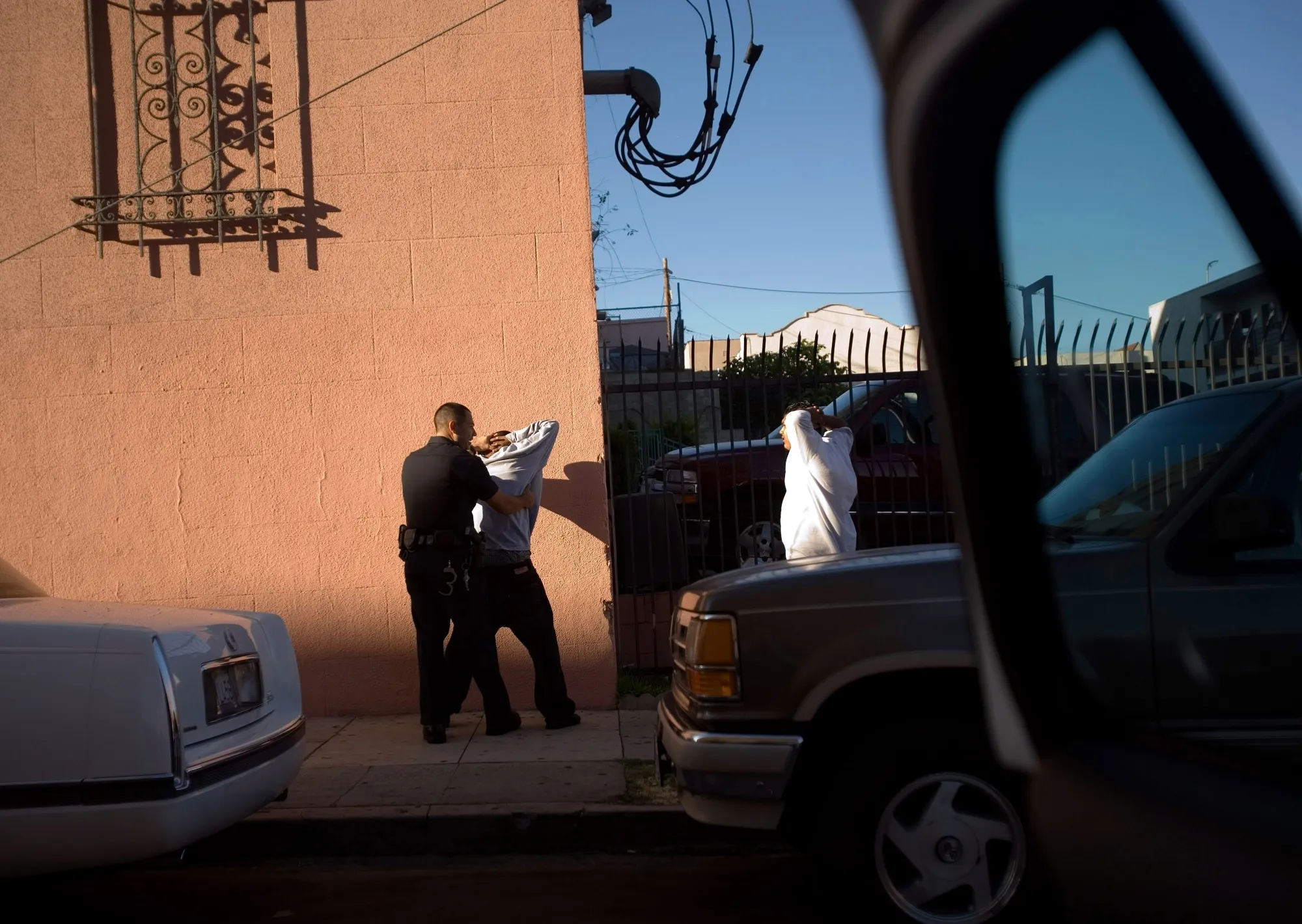 2006年8月,洛杉磯警察局幫派專案組警官攔截並搜查一名已知的18街幫派成員。攝影師:羅伯特·尼克爾伯格/蓋蒂圖片社人權組織批評布克爾的嚴厲政策剝奪了正當程序權利。部分家庭稱無辜親人因未實施的罪行被監禁。據人權組織統計,已有數百名囚犯死於過度擁擠的監獄。