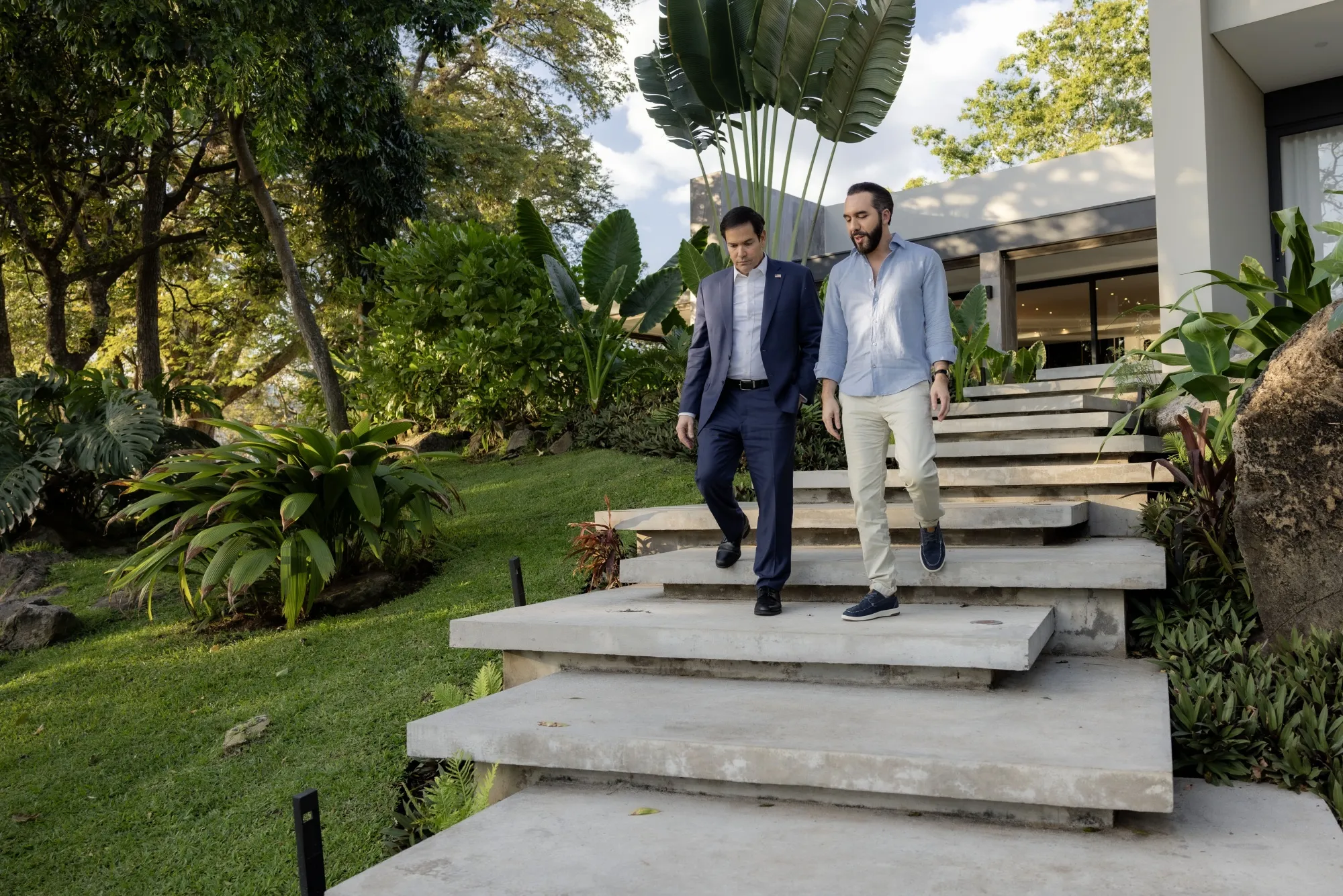 2月3日,馬可·魯比奧在聖薩爾瓦多與納伊布·布克萊會晤。圖片來源:薩爾瓦多總統府/阿納多盧通訊社/蓋蒂圖片社閲讀更多:犯罪率驟降與比特幣繁榮之下,薩爾瓦多仍在追逐經濟奇蹟
