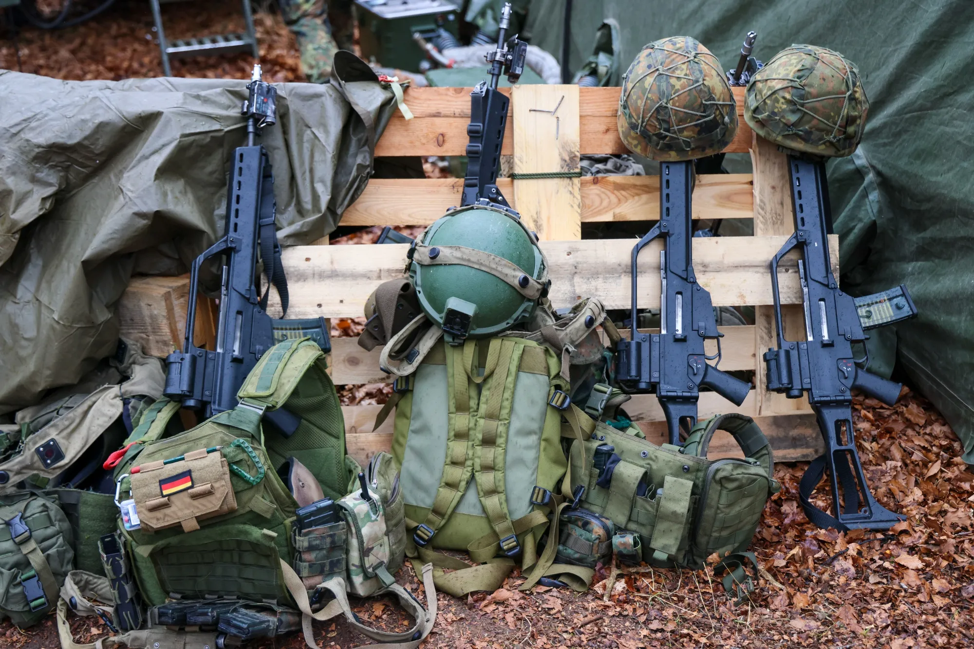 德國霍恩費爾斯訓練區多國聯合軍演期間的軍事裝備展示。
