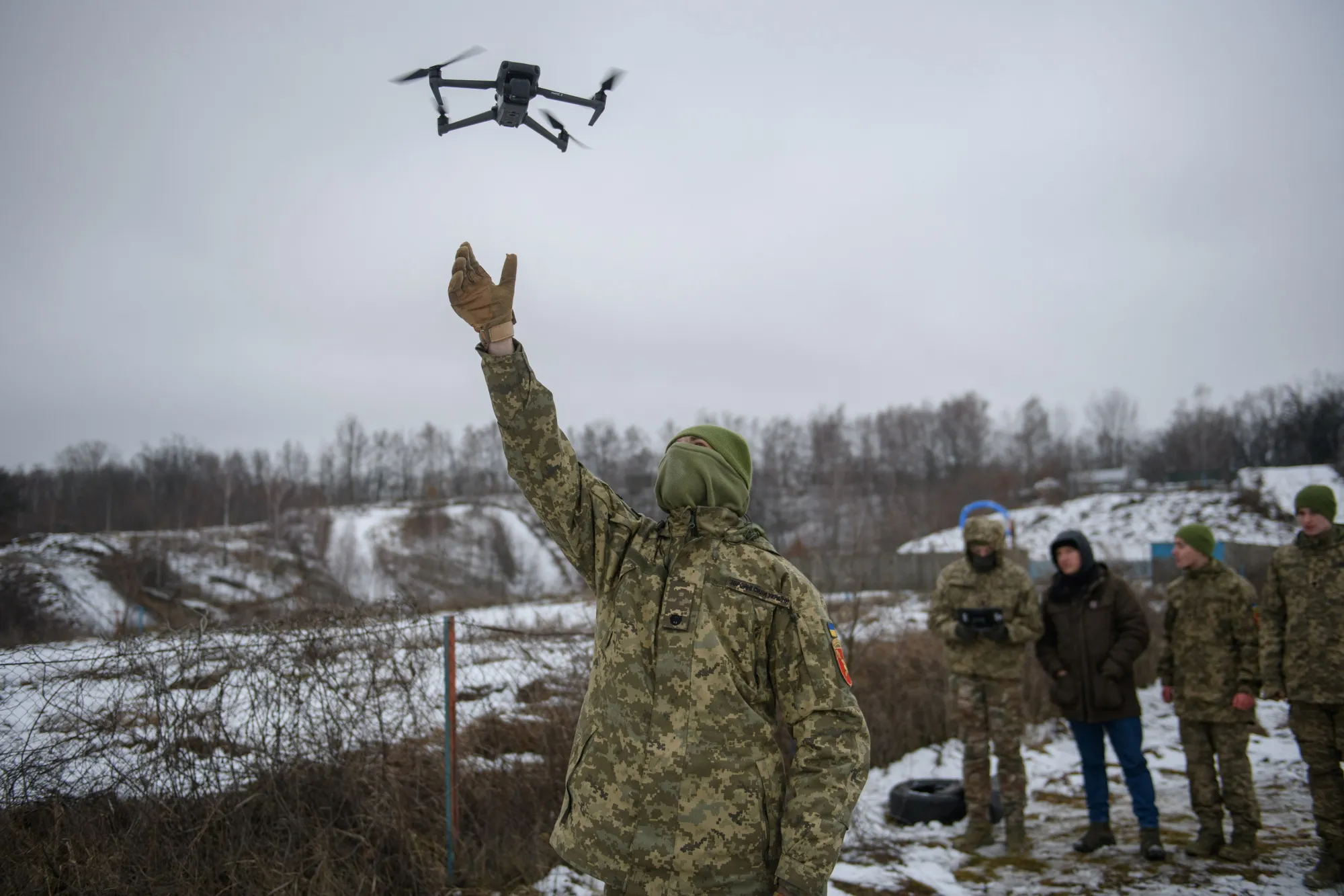 上月,烏克蘭基輔地區塔拉斯·舍甫琴科軍事學院,一名教官正在指導學員操作無人機飛行。