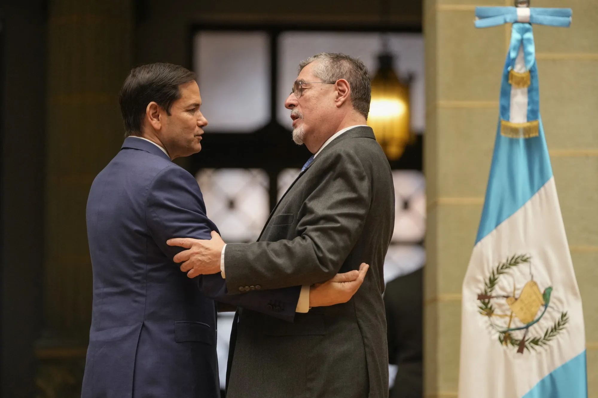 2月5日,馬可·魯比奧與貝爾納多·阿雷瓦洛在危地馬拉城文化宮。圖片來源:Mark Schiefelbein/AFP/Getty Images危地馬拉正動用政府財政資金增加就業創造和社會項目支出,同時為應對美國可能增加的驅逐出境人數做準備。