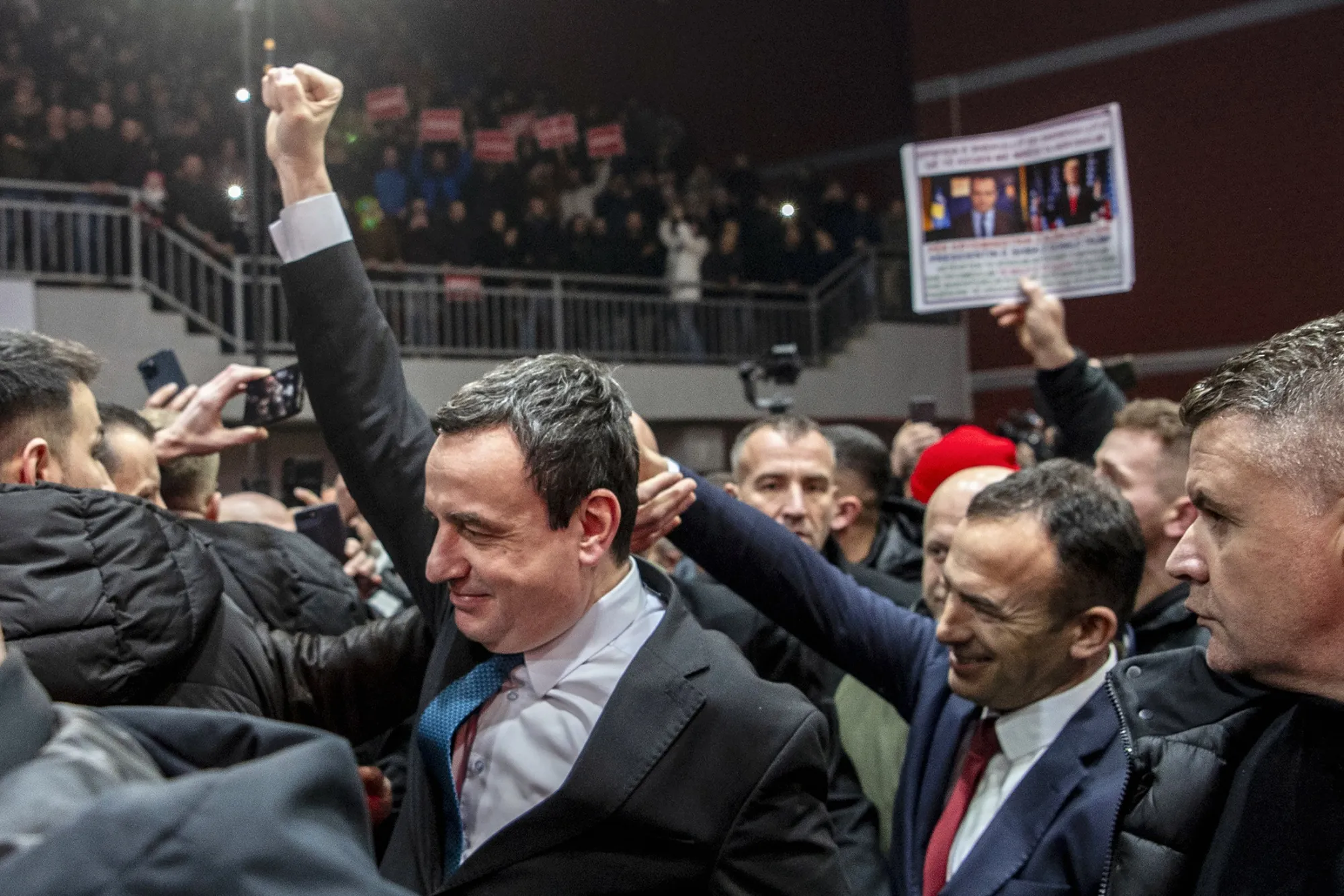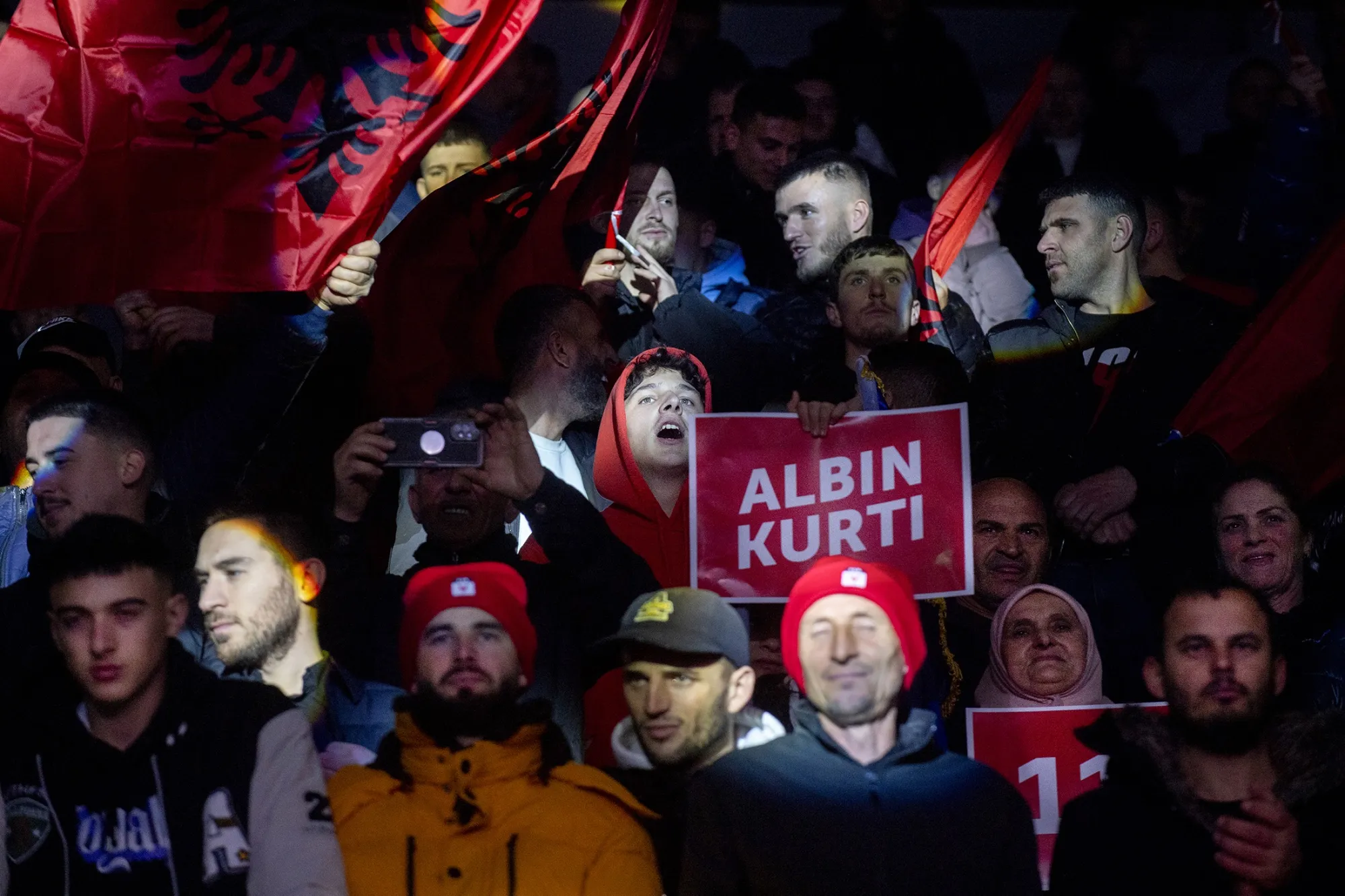 1月20日,科索沃奧比利克,阿爾賓·庫爾蒂總理的支持者在其政黨"自決"集會上。