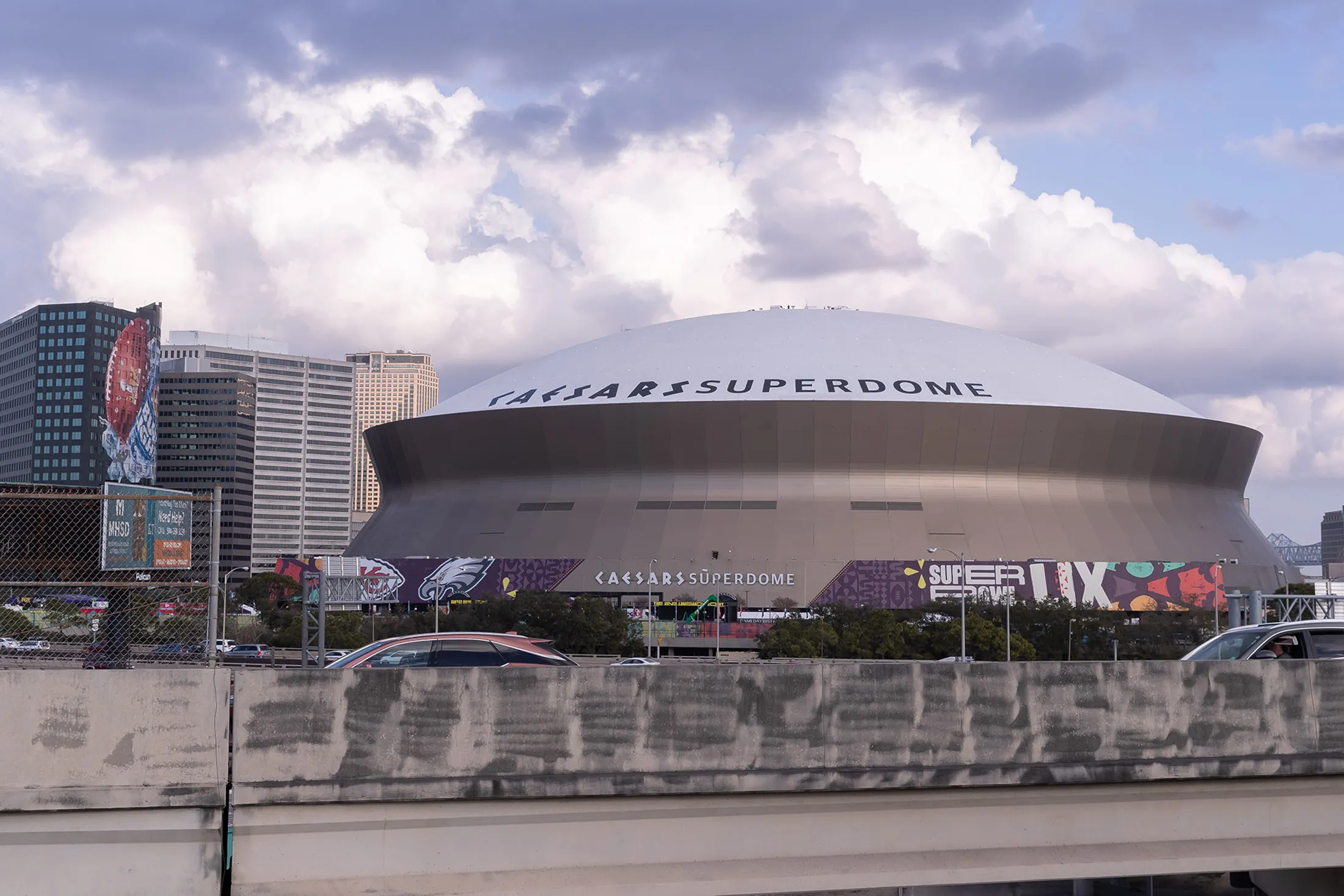 2月7日,路易斯安那州新奧爾良市,第五十九屆超級碗舉辦地凱撒超級穹頂體育場。攝影師:瑪麗亞·霍姆斯/德福迪圖片社/蓋蒂圖片社唐納德·特朗普既是美國職業橄欖球大聯盟的競爭者,也是批評者。他曾與聯盟某些巨頭結盟,又與其他成員交惡。如今他計劃借橄欖球賽再次取悦民眾——親臨超級碗現場。