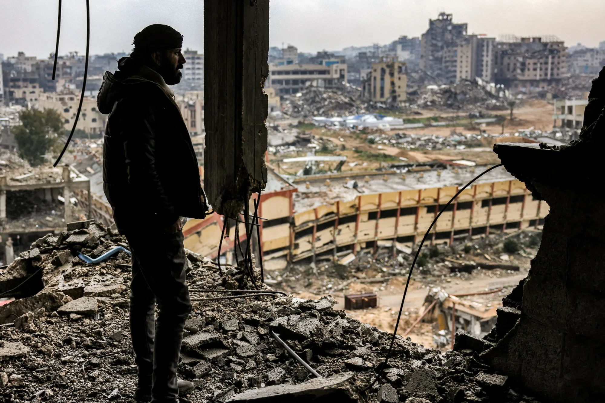 2月10日,一名居民從加沙城北部嚴重損毀的建築物中向外張望。攝影師:巴沙爾·塔勒布/法新社/蓋蒂圖片社特朗普還表示,如果埃及和約旦不同意他接收加沙地帶巴勒斯坦難民的計劃(約旦國王阿卜杜拉週二將在華盛頓與特朗普會晤),他將考慮切斷對這兩國的外援,以便美國能對這片飽受戰爭摧殘的地區進行大規模重建。