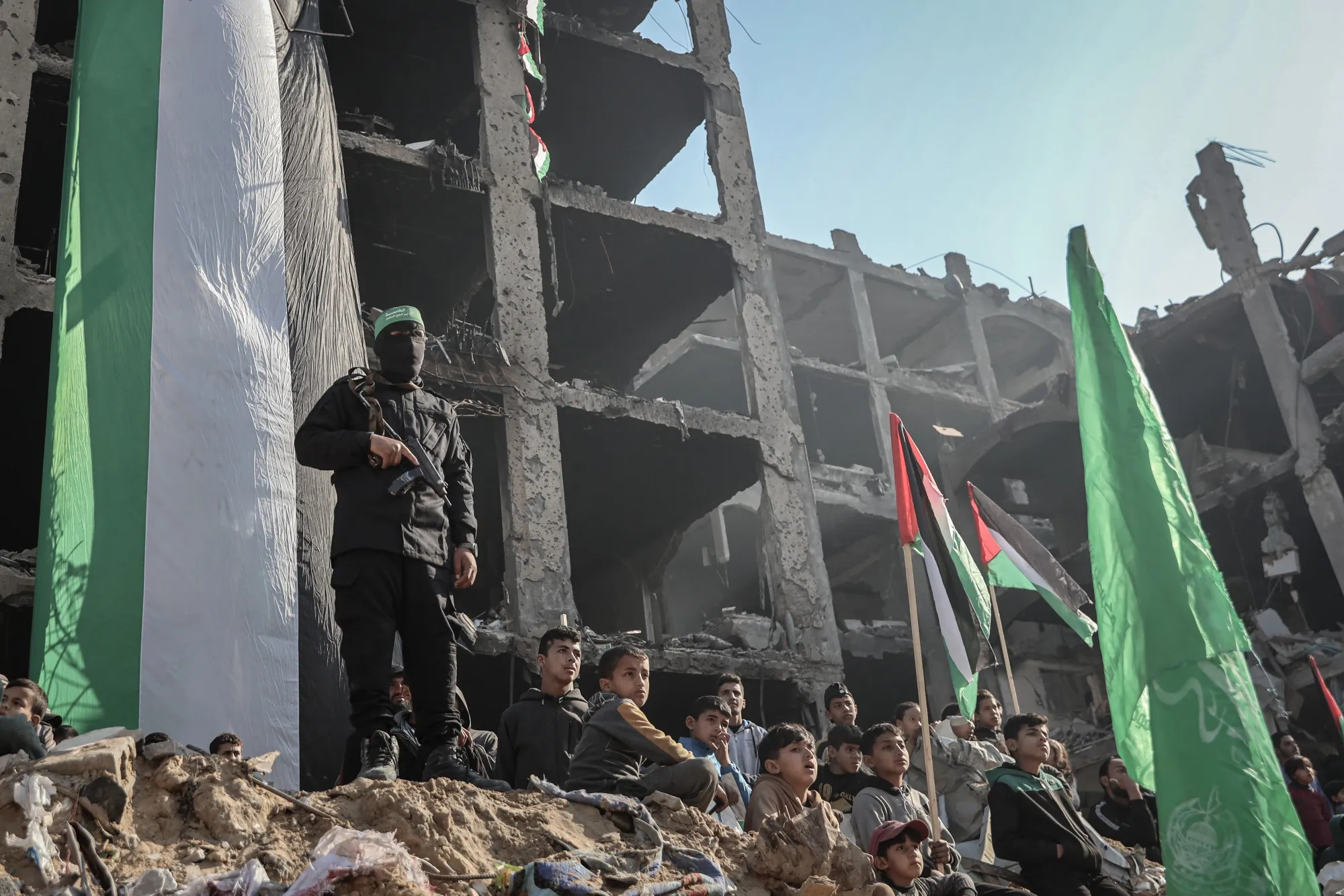 1月30日,加沙北部賈巴利亞難民營,一名哈馬斯武裝人員在釋放以色列人質的囚犯交換行動中警戒。攝影師:艾哈邁德·薩利姆/彭博社許多中東領導人曾與特朗普打過交道,他們私下揣測其立場可能只是極限施壓的談判策略。