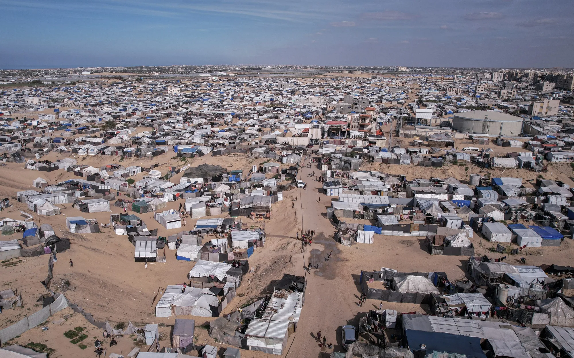 1月24日,加沙南部馬瓦西地區流離失所的巴勒斯坦人營地。攝影師:艾哈邁德·薩利姆/彭博社埃及外長巴德爾·阿卜杜勒阿提本週也前往華盛頓,該國將於2月27日主辦阿拉伯峯會討論巴勒斯坦問題。