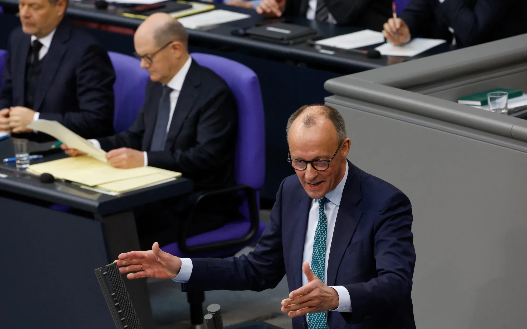 弗里德里希·默茨2月11日在聯邦議院。照片:奧德·安德森/法新社/蓋蒂圖片社但朔爾茨警告説,默茨代表的恰恰相反,是對國家繁榮的嚴重威脅——他更進一步表示:“康拉德·阿登納統一了歐洲。赫爾穆特·科爾加強了歐洲。安格拉·默克爾維繫了歐洲。而弗里德里希·默茨正試圖埋葬歐洲。”不出所料,這番猛烈抨擊在保守派陣營中引發了憤怒和憤慨。