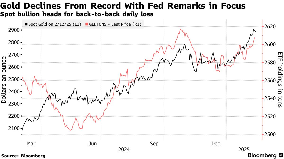 現貨黃金週二最高觸及每盎司2,942美元上方,紐約時間上午11:57上漲0.2%至2,902.78美元。彭博美元現貨指數上漲0.1%。白銀基本持平,鉑金上漲而鈀金下跌。