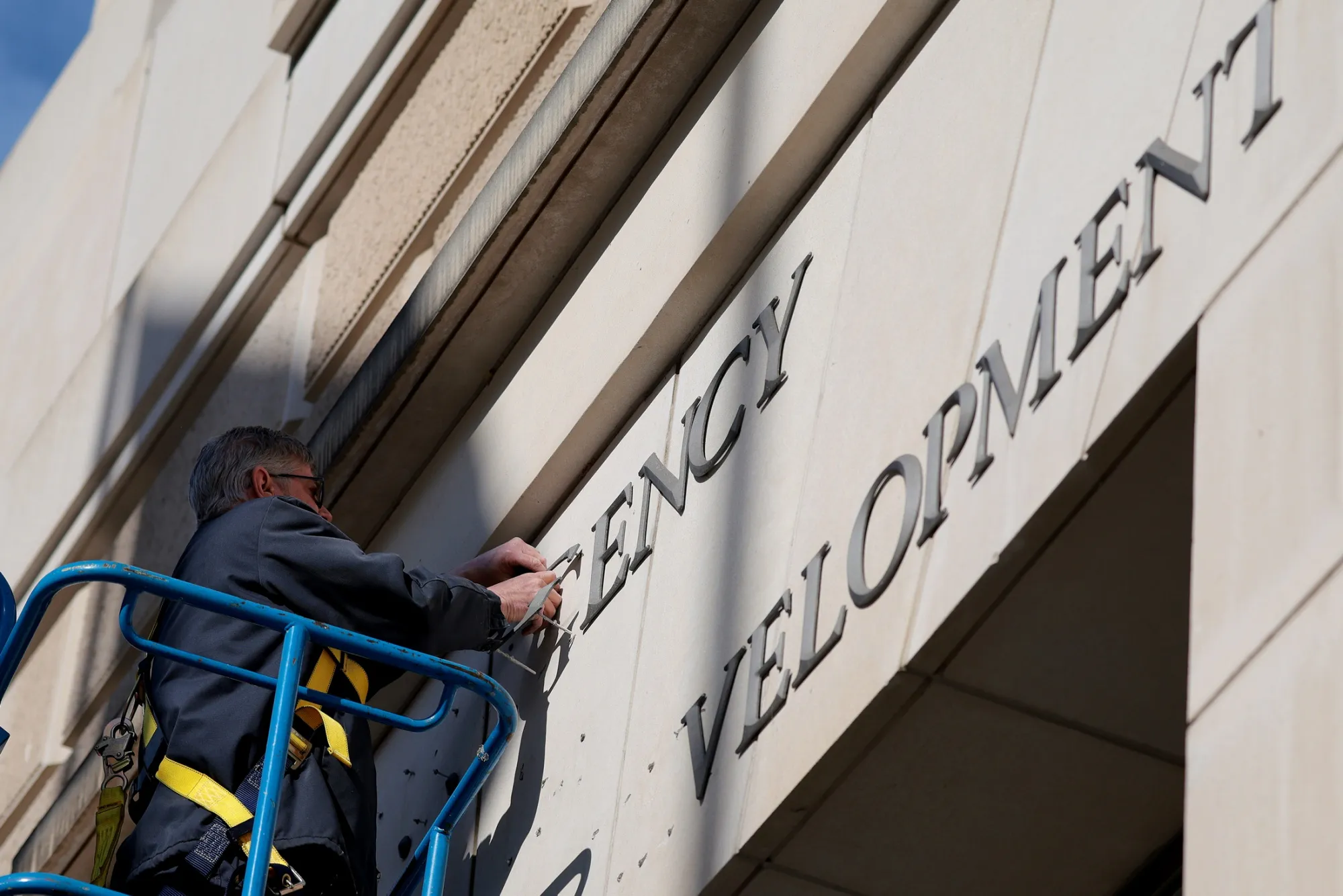 一名工人在華盛頓總部拆除美國國際開發署的標誌。攝影師:凱拉·巴特科夫斯基/蓋蒂圖片社這種沮喪、恐懼和不確定性在全國各地重複出現——不僅出現在其他路德會慈善機構中,也出現在海外天主教援助工作者中,他們的工作在馬斯克試圖關閉美國國際開發署(USAID)的過程中岌岌可危;癌症研究人員的國家衞生研究院(NIH)資金突然陷入危險;以及那些公務員,他們數週來處於一種懸而未決的狀態,無法在馬斯克創造的條件下工作,但至今仍不願辭職。馬斯克將這一切描繪為健康的,是一種戰略性的混亂,需要用來撼動一個他和其他許多共和黨人認為從根本上已經崩潰的體系。正如特朗普在2月初的新聞發佈會上所説,“我們必須拆解其中一些東西來發現腐敗。“而政府支出的過度是兩黨成員在尋求展示兩黨合作時熟悉的目標。