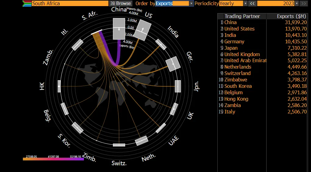 過去二十年間,華盛頓提供了超過80億美元的援助,主要用於防治艾滋病。除了失去這些援助,全面外交爭端和貿易制裁將雪上加霜。國務卿馬可·盧比奧將缺席本月晚些時候在約翰內斯堡舉行的G20會議。美國是南非第二大出口市場,且存在貿易順差,這符合特朗普對等關税的前提條件: