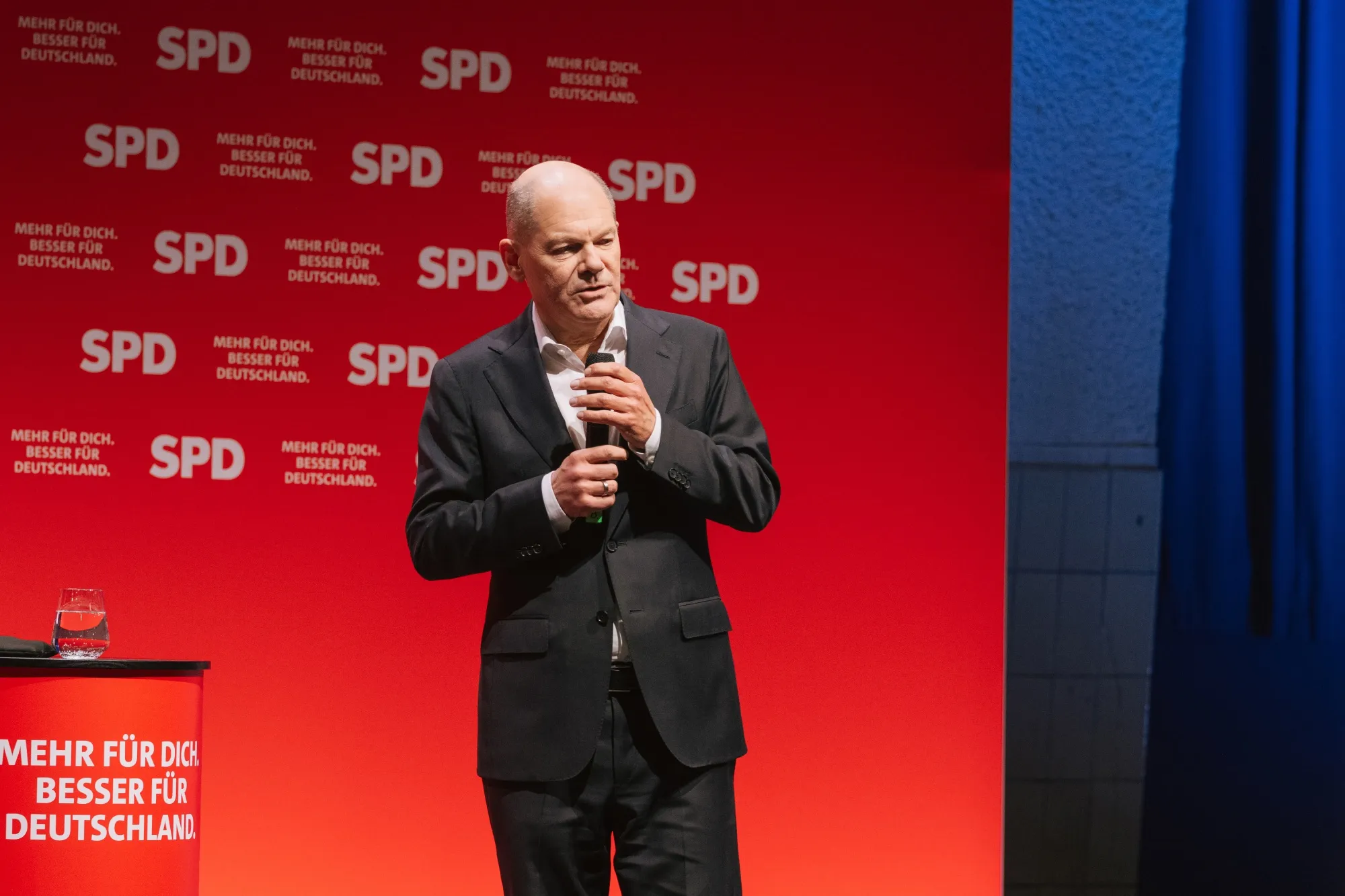 2月8日,德國萊比錫,奧拉夫·朔爾茨出席社會民主黨(SPD)大選競選集會。攝影師:Iona Dutz/彭博社奧拉夫·朔爾茨正面臨德國總理最慘烈的選舉敗局,其糟糕的經濟政績是主要原因之一。