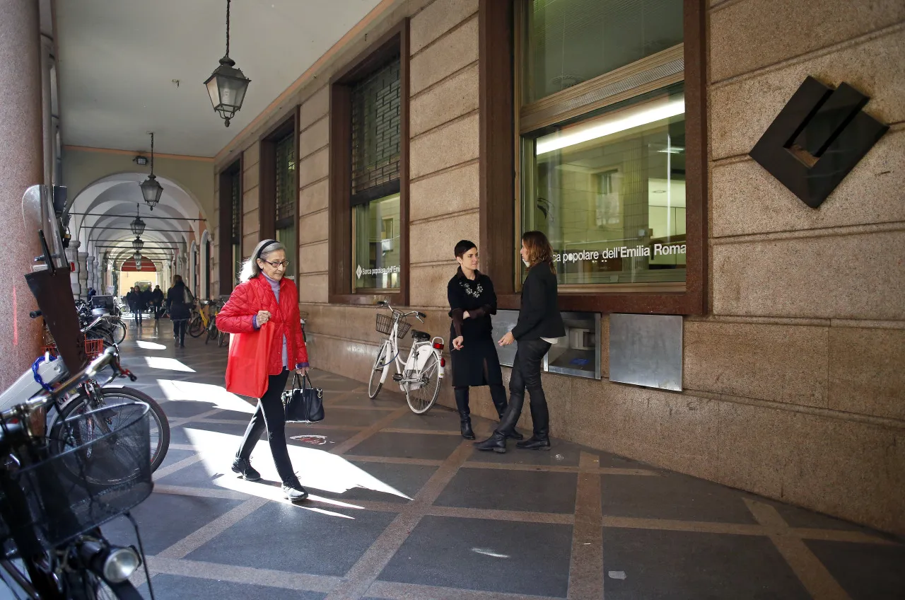 行人經過意大利摩德納的艾米利亞羅馬涅人民銀行(BPER)總部。