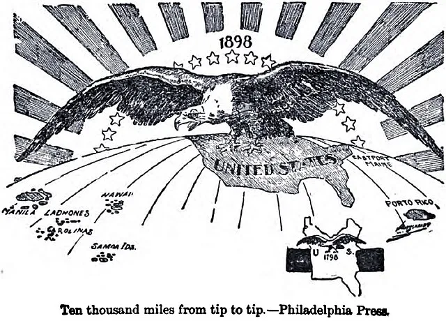 美國曾是全球最具野心的擴張主義者之一。19世紀期間,它突破原有疆界奪取北美最富饒的土地,過程中往往驅逐原住民。1812年戰爭中美軍進攻加拿大未果,卻在1848年奪走墨西哥半壁江山。1898年又從西班牙手中強佔菲律賓、波多黎各等領土。通過詭計或脅迫手段,美國逐步控制了從佛羅里達到夏威夷的戰略要地。