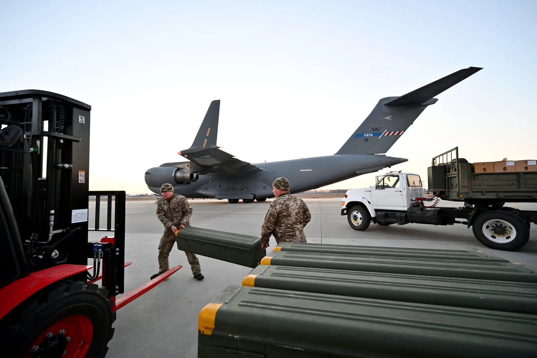 烏克蘭軍人在基輔接收美國製造的毒刺導彈。