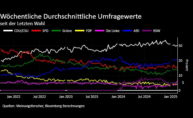奧拉夫·朔爾茨圖片來源:Alex Kraus/彭博社朔爾茨的言論凸顯了德國和歐洲面臨的重大風險。美國總統唐納德·特朗普宣佈將在未來幾周對汽車、鋼鐵和鋁徵收關税。根據民調顯示,週日的德國聯邦議院選舉中社會民主黨可能落敗。