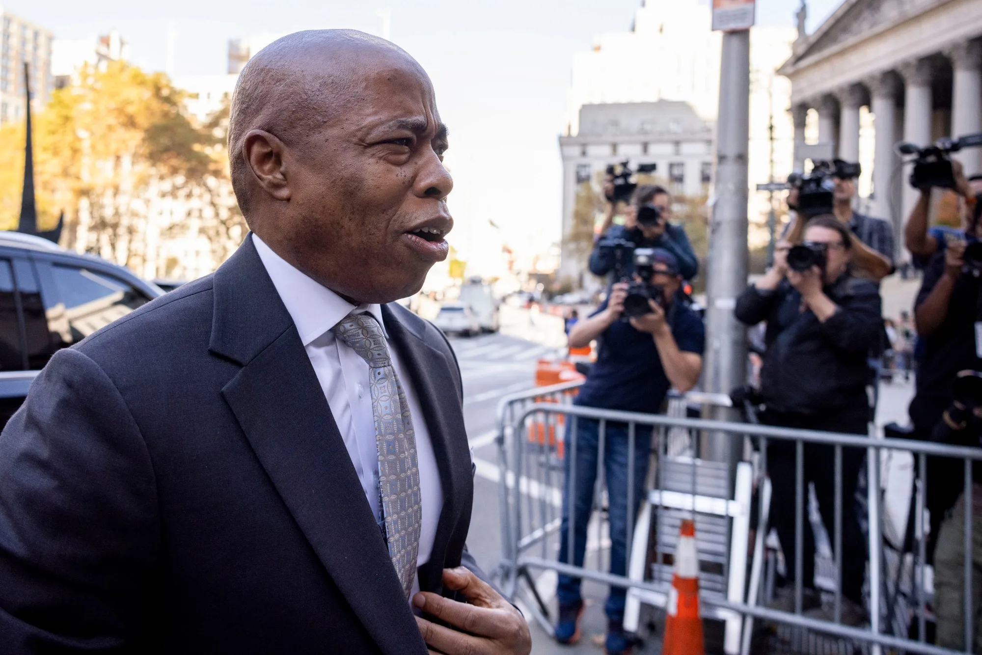 埃裏克·亞當斯於11月1日抵達紐約聯邦法院。攝影師:Yuki Iwamura/彭博社霍楚爾在週一晚間的聲明中表示,她意識到自己肩負着"重大責任”,並補充説在紐約州235年的歷史上,還沒有州長罷免過民選市長。