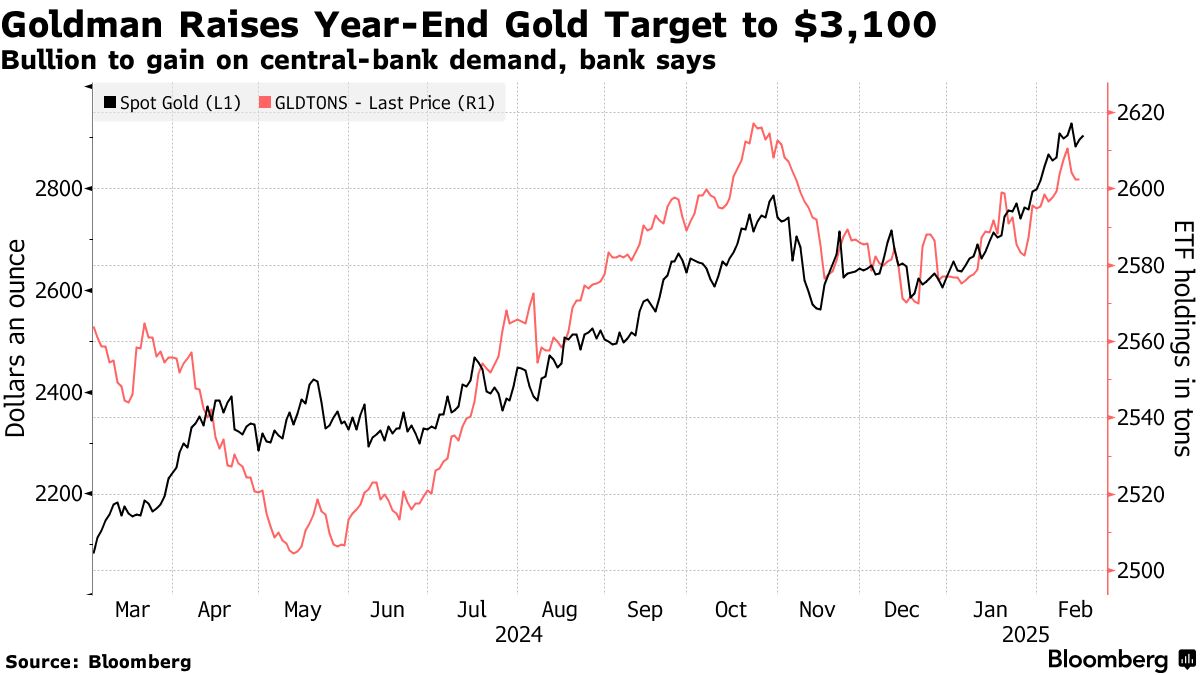 高盛因央行購金需求上調黃金目標價至3100美元——彭博社