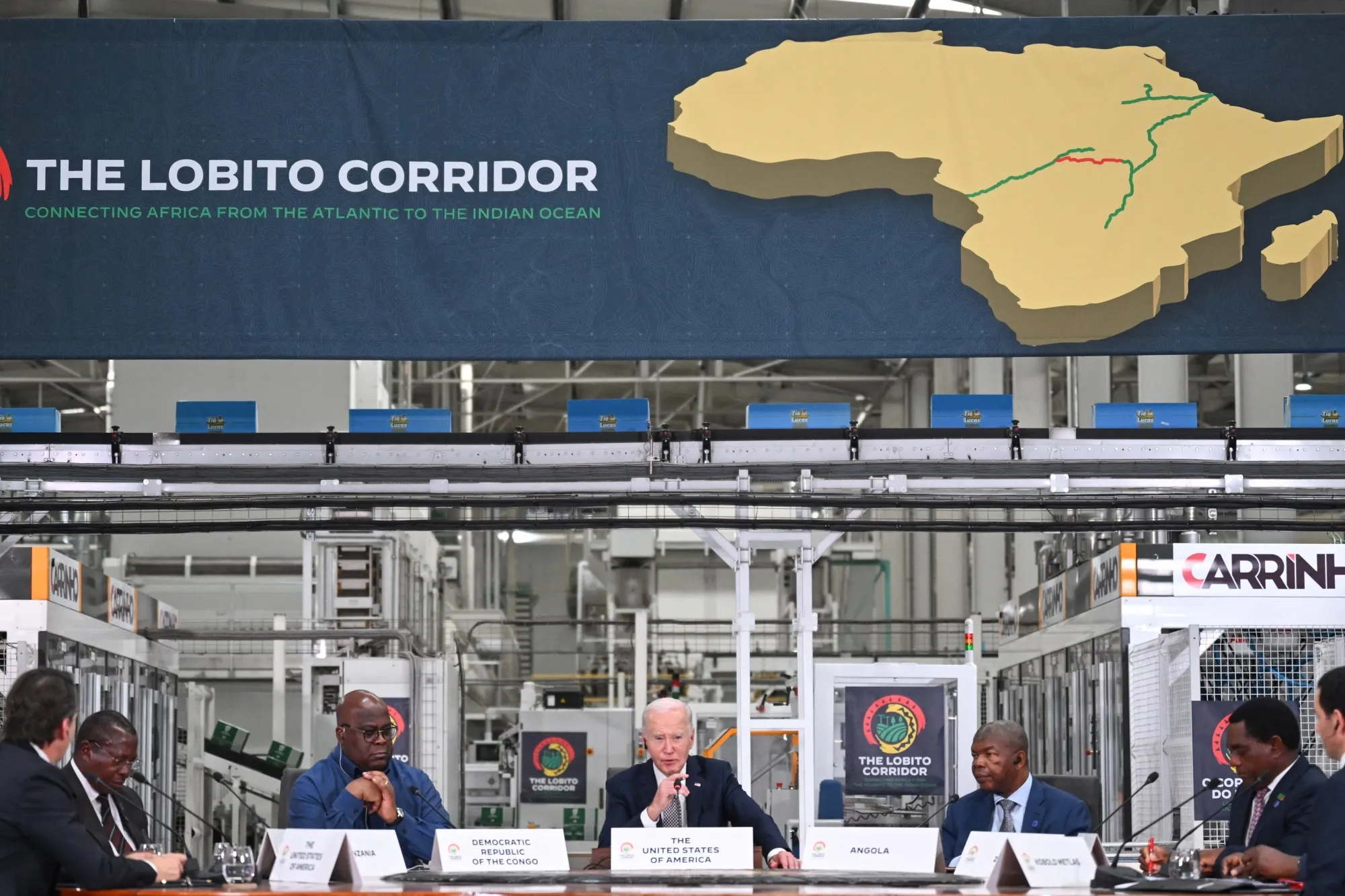 12月4日,喬·拜登在本格拉附近的洛比託走廊泛非峯會現場(中)。攝影師:安德魯·卡巴列羅-雷諾茲/法新社/蓋蒂圖片社去年,美國批准為洛比託大西洋鐵路項目提供5.53億美元國際開發金融公司貸款。該項目由大宗商品貿易商托克集團牽頭的財團運營,旨在將剛果和贊比亞的銅礦與鄰國安哥拉的洛比託港口連接起來。
