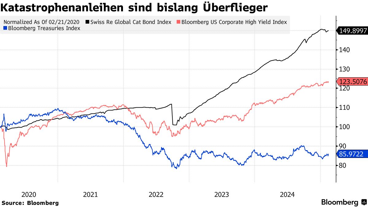 投資者上一次看到收益率出現顯著下滑是在2022年9月,當時颶風伊恩席捲佛羅里達州,導致約650億美元的保險損失。根據瑞士再保險指數,當年災難債券的損失被限制在約2%。