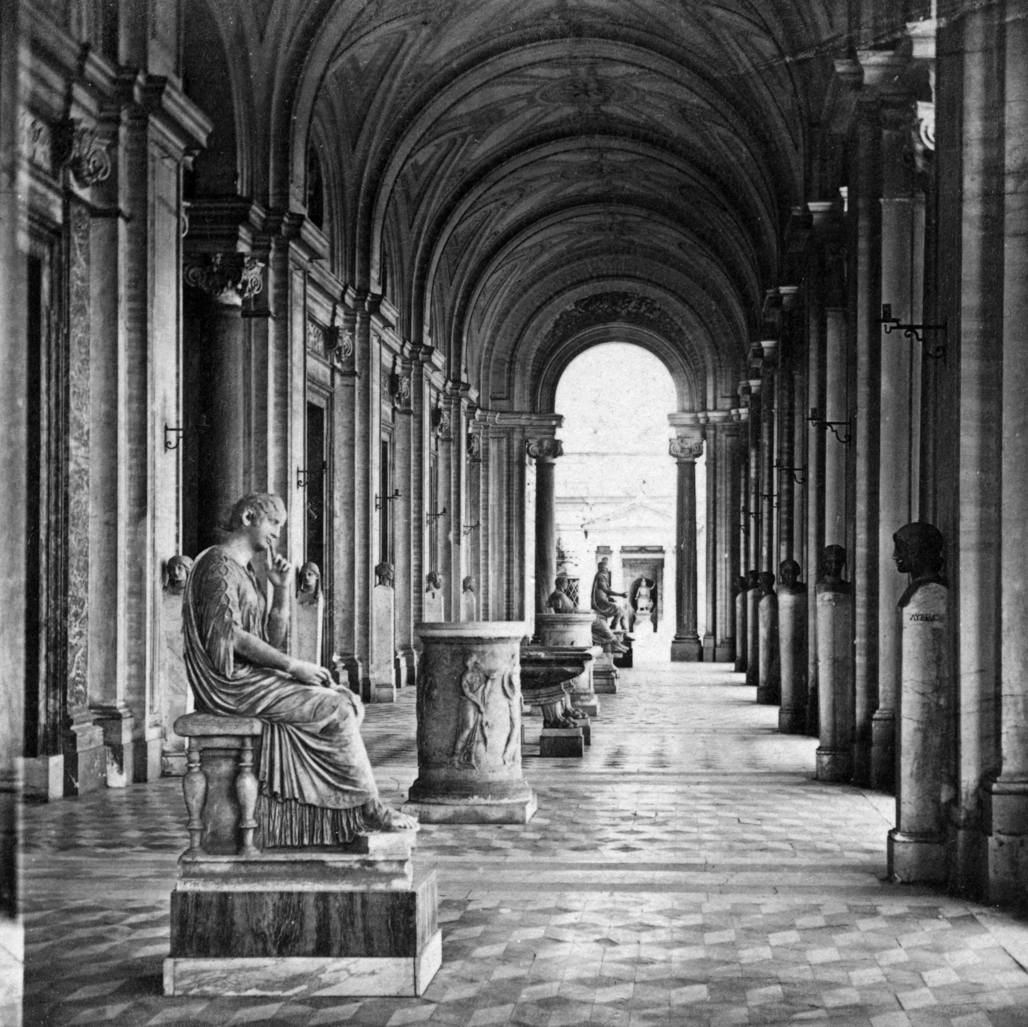 位於羅馬市中心綠樹成蔭社區的阿爾巴尼·託洛尼亞別墅,最初是為展示18世紀偉大藝術收藏之一而設計來源:公有領域回到街上,我終於聯繫上基金會的工作人員,他帶我穿過迷宮般的走廊和庭院,來到一扇巨大的金屬門前;嚮導用力敲門(這裏沒有門鈴),一位面帶微笑的文物修復師將門開了一條縫。我進去了。