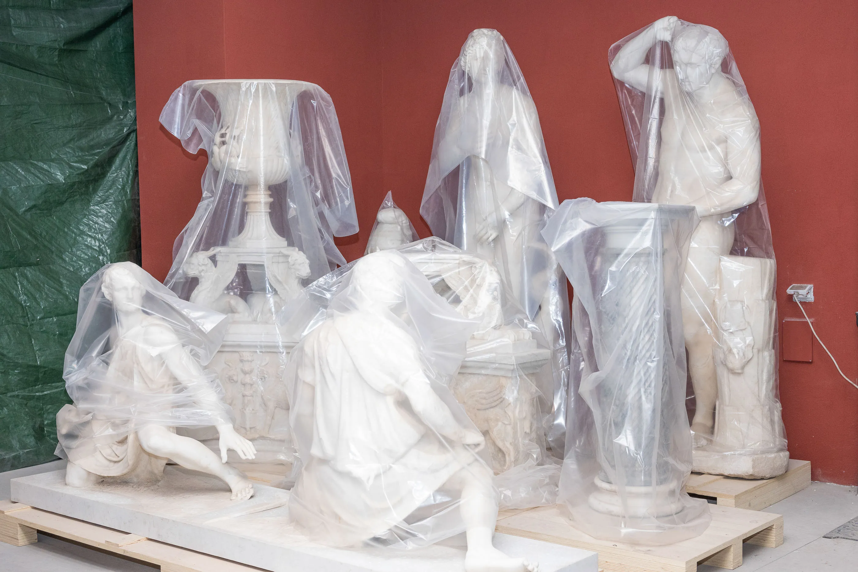 清潔大部分雕像時,修復師會先用碳酸銨浸泡過的紙漿包裹它們,以溶解數十年來積累的灰塵。隨後揭去紙漿,用海綿或棉籤擦拭大理石,謹記目標是清除表面污垢而不破壞大理石的自然包漿。接着對雕塑進行繪圖記錄和拍照,檢查並分類身體的每個部位:這條腿是為了仿古而添加的現代部件嗎?頸部與面部使用的是同一種大理石嗎?