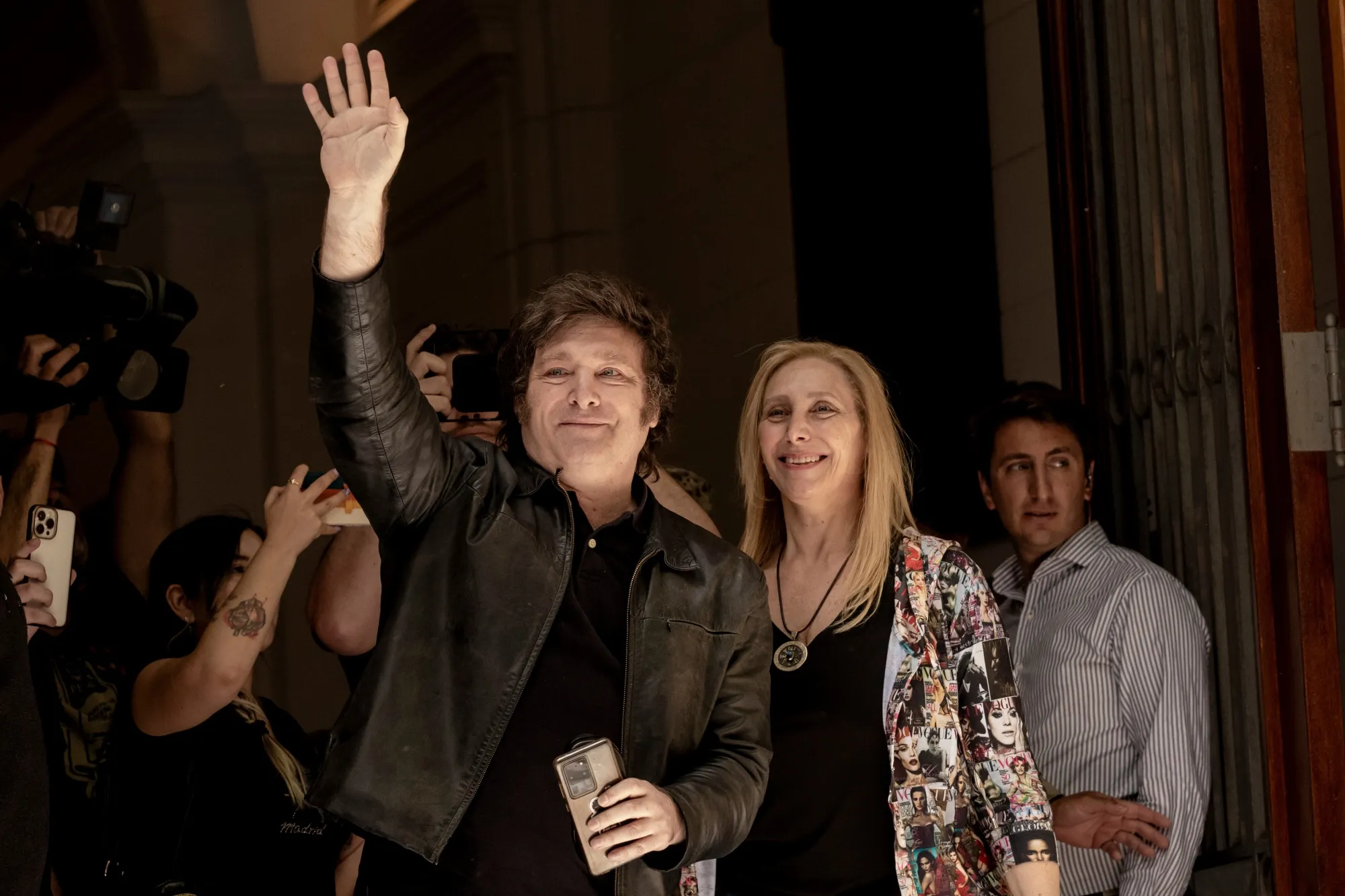 2023年布宜諾斯艾利斯阿根廷總統決選期間,哈維爾·米萊與妹妹卡琳娜在投票站。