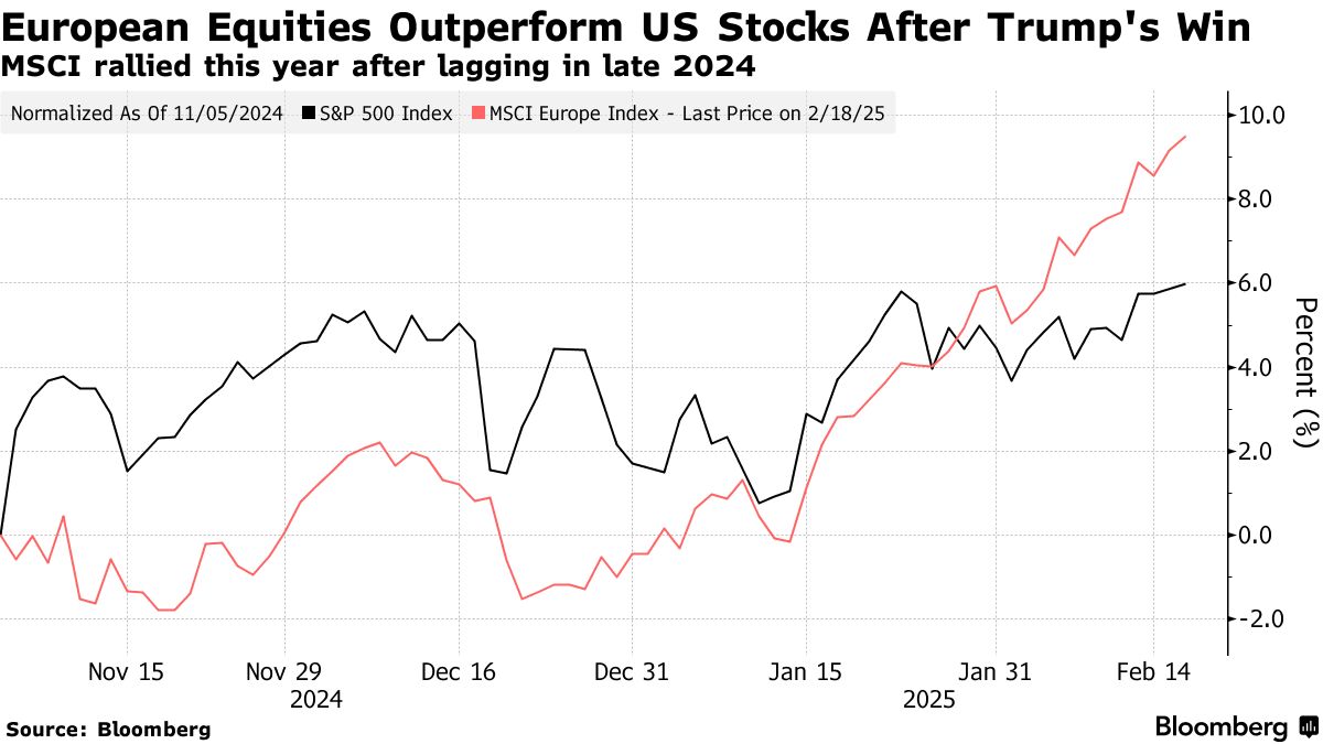 投資者正押注德國選舉結果可能帶來財政刺激並提振地區經濟復甦,同時烏克蘭停火的可能性也改善了市場情緒。巴克萊的Cau表示,市場同時期待美國在貿易政策上採取更温和立場。
