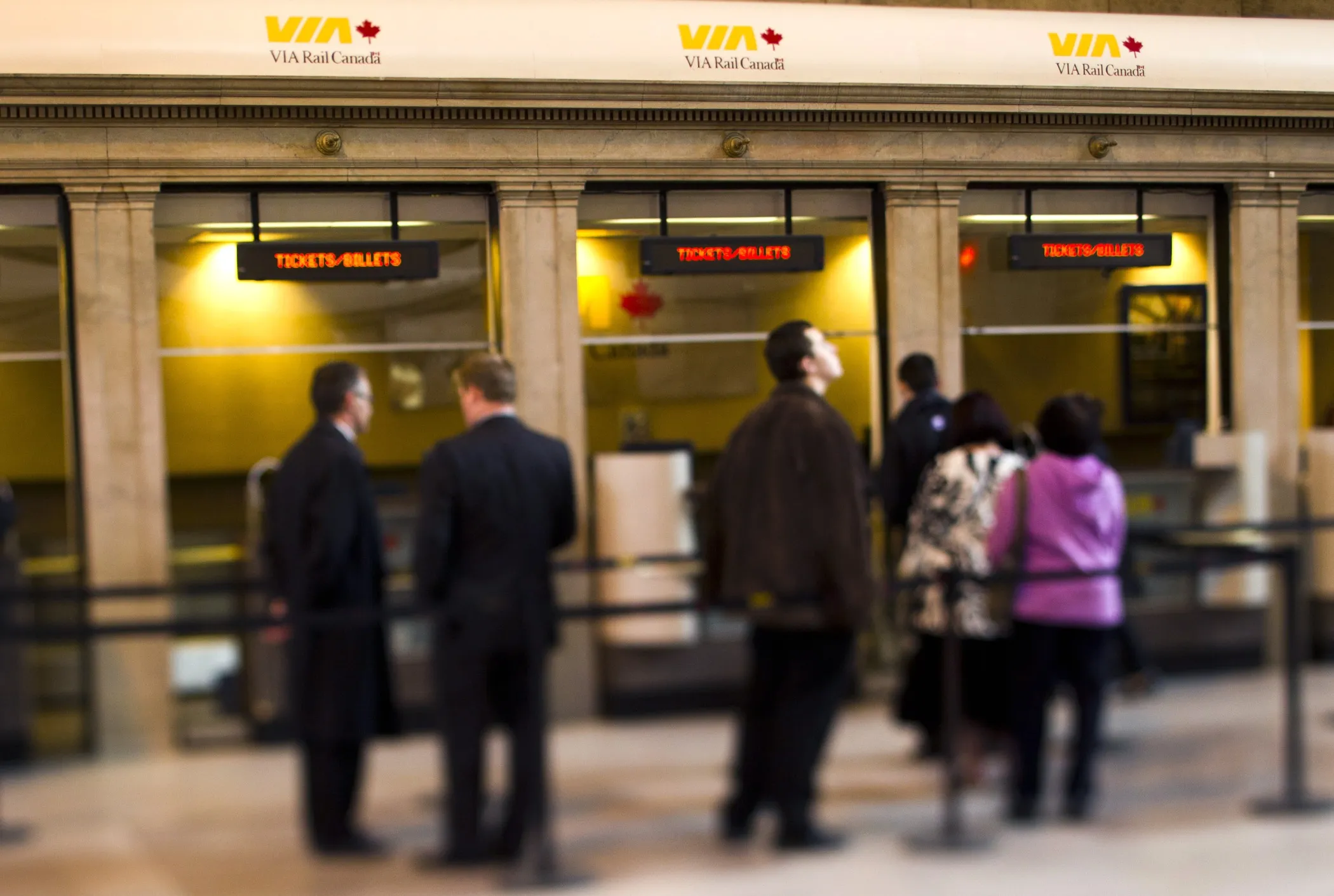 乘客們在多倫多維亞鐵路售票處排隊等候。
