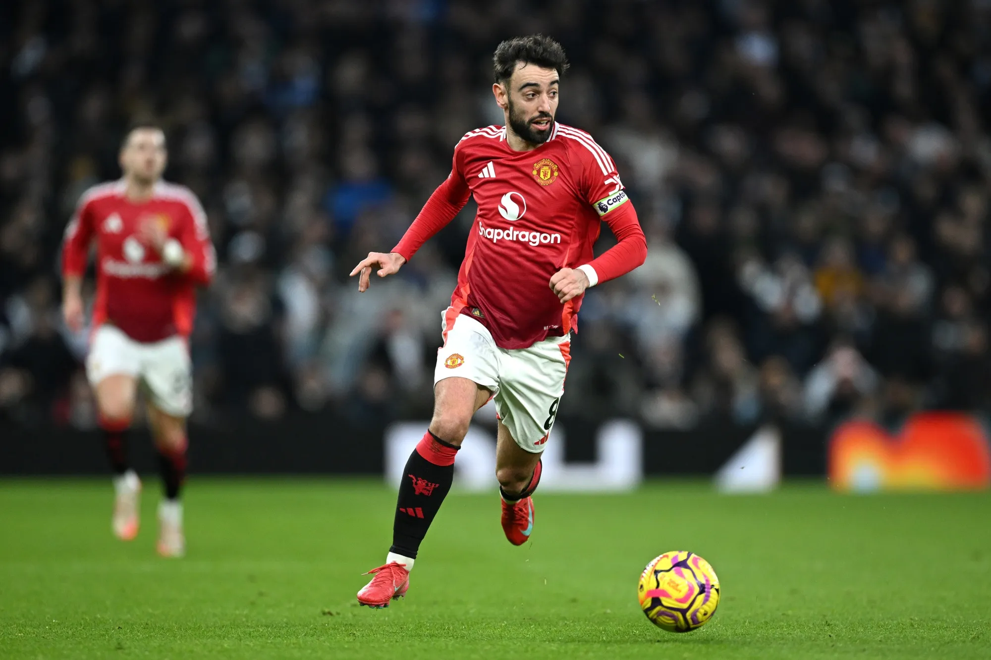 2月16日倫敦英超聯賽中,曼聯隊的布魯諾·費爾南德斯對陣托特納姆熱刺隊。