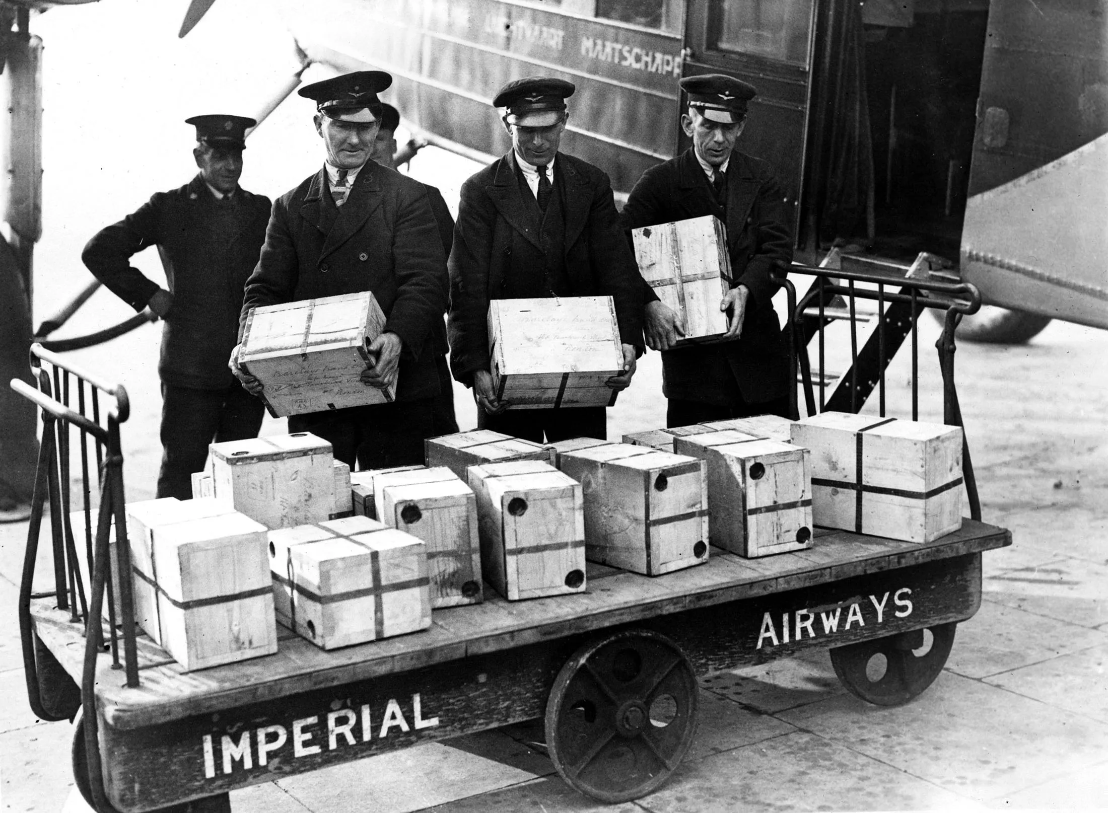 1934年,運往英格蘭銀行金庫的黃金在倫敦郊區的克羅伊登機場卸貨。攝影師:J. A. 漢普頓/赫頓檔案館[昨日答案:方濟各教皇是首位來自美洲的教皇,也是8世紀以來首位非歐洲籍教皇]