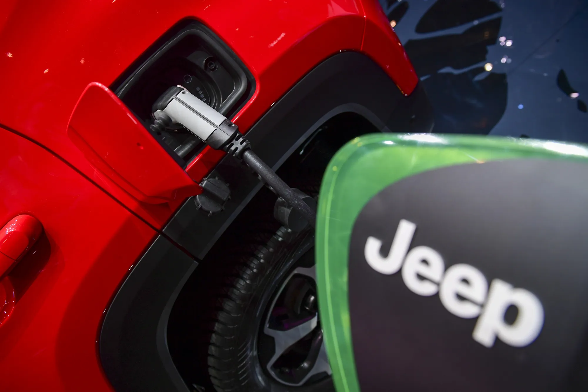 充電線連接着一輛吉普指南者插電式混合動力SUV。攝影師:克里斯·J·拉特克利夫/彭博社代表該工廠汽車工人的工會Unifor表示,布蘭普頓的"意外公告"是一個"嚴重關切"的問題。工會稱,這讓人對改造過程的時間表產生了懷疑。