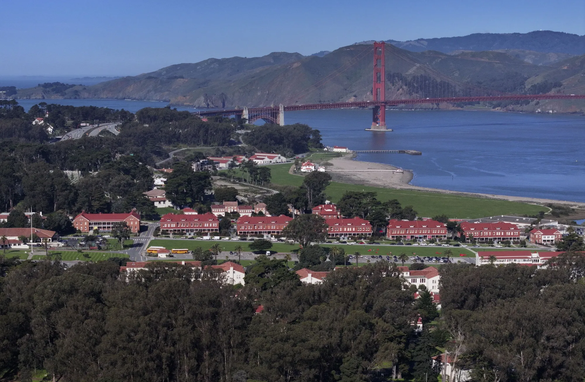 特朗普命令管理金門大橋旁這片廣袤綠地(點綴着修復後的軍事營房)的普雷西迪奧信託基金削減"所有非法定組成部分和職能"。